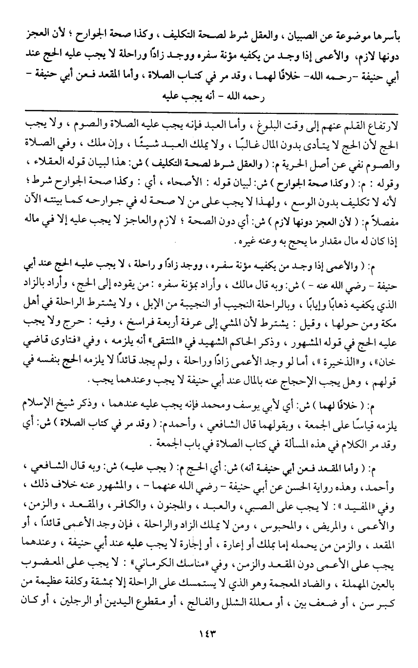 والأعمى إذا وجد من يكفيه مؤنة سفره ووجد زادا وراحلة لا يجب عليه الحج عند أبي حنيفة - رَحِمَهُ اللَّهُ - خلافا لهما، وقد مر في كتاب الصلاة،