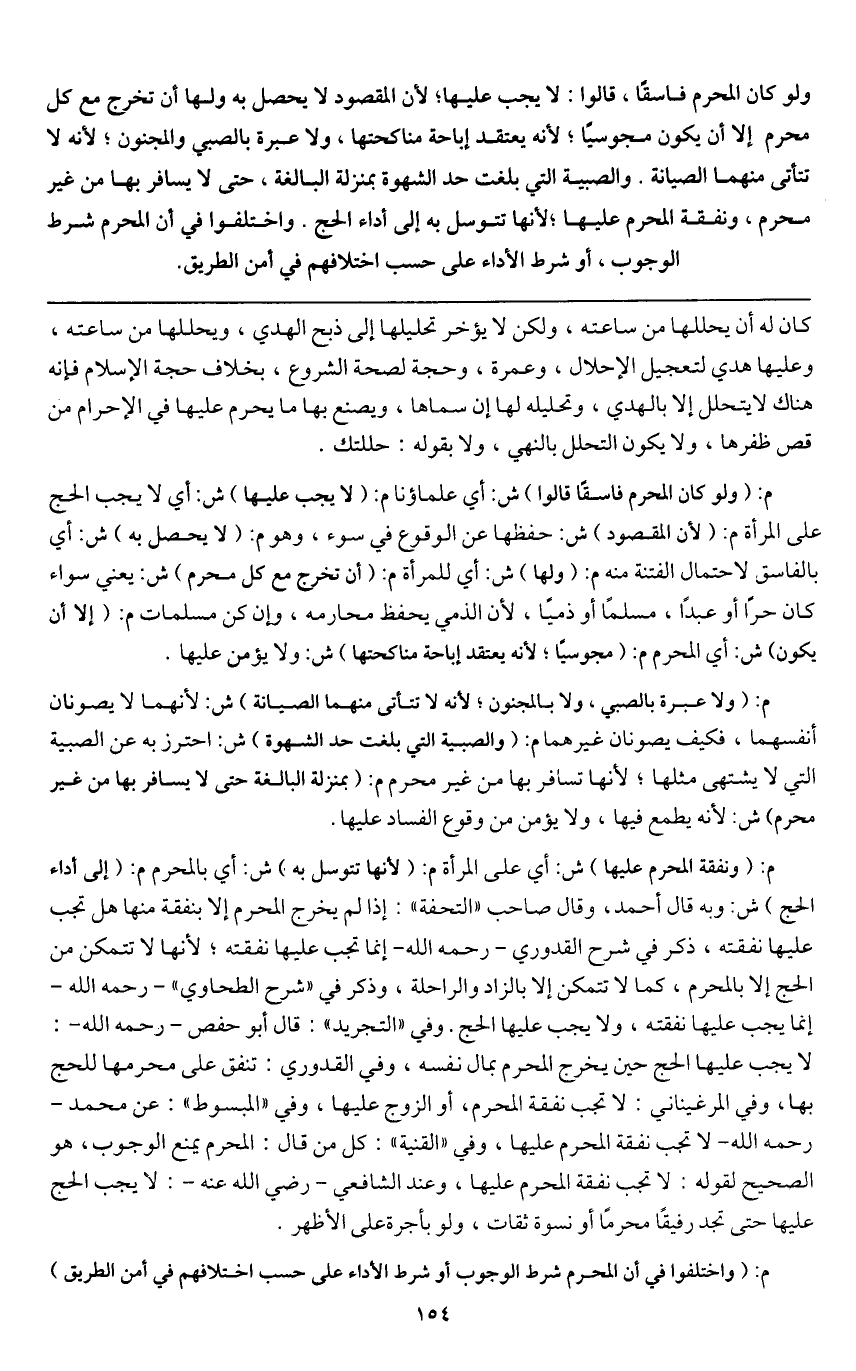 ولو كان المحرم فاسقا، قالوا: لا يجب عليها؛ لأن المقصود لا يحصل به ولها أن تخرج مع كل محرم إلا أن يكون مجوسيا؛ لأنه يعتقد إباحة مناكحتها، ولا عبرة بالصبي والمجنون؛ لأنه لا تتأتى منهما الصيانة. والصبية التي بلغت حد الشهوة بمنزلة البالغة، حتى لا يسافر بها من غير محرم، ونفقة المحرم عليها؛ لأنها تتوسل به إلى أداء الحج. واختلفوا في أن المحرم شرط الوجوب، أو شرط الأداء على حسب اختلافهم في أمن الطريق.