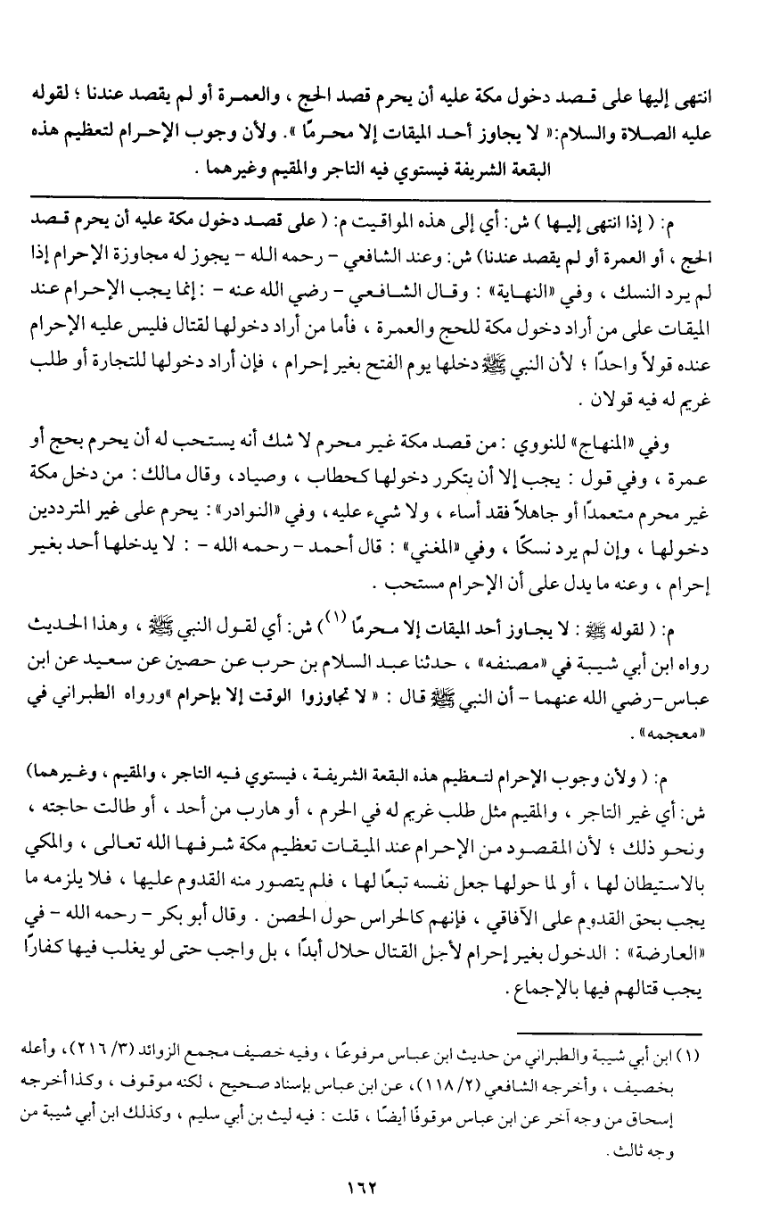 ـــــــــــــــــــــــــــــQم: (إذا انتهى إليها) ش: أي إلى هذه المواقيت م: (على قصد دخول مكة عليه أن يحرم قصد الحج، أو العمرة أو لم يقصد عندنا) ش: وعند الشافعي - رَحِمَهُ اللَّهُ - يجوز له مجاوزة الإحرام إذا لم يرد النسك، وفي " النهاية ": وقال الشافعي - رَضِيَ اللَّهُ عَنْهُ -: إنما يجب الإحرام عند الميقات على من أراد دخول مكة للحج والعمرة، فأما من أراد دخولها لقتال فليس عليه الإحرام عنده قولاً واحداً؛ لأن النبي - صَلَّى اللَّهُ عَلَيْهِ وَسَلَّمَ - دخلها يوم الفتح بغير إحرام، فإن أراد دخولها للتجارة أو طلب غريم له فيه قولان.