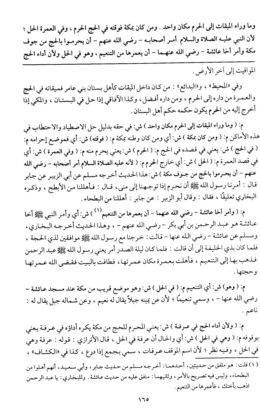 وما وراء الميقات إلى الحرم مكان واحد. ومن كان مكة فوقته في الحج الحرم، وفي العمرة الحل؛ لأن «النبي - عَلَيْهِ الصَّلَاةُ وَالسَّلَامُ - أمر أصحابه - رَضِيَ اللَّهُ عَنْهُمْ - أن يحرموا بالحج من جوف مكة وأمر أخا عائشة - رَضِيَ اللَّهُ عَنْهُمَا - أن يعمرها من التنعيم وهو في الحل» ولأن أداء الحج