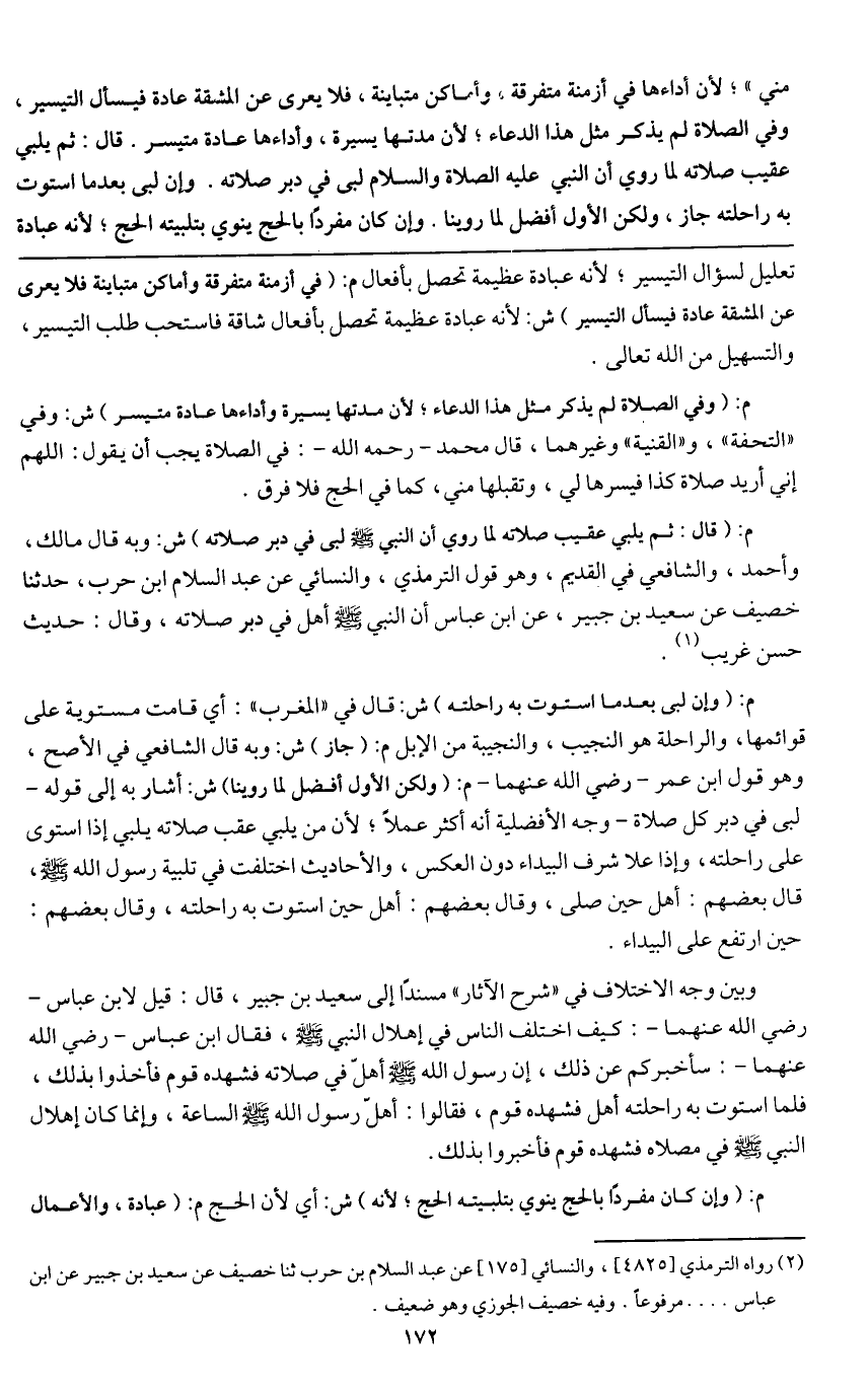 وبين وجه الاختلاف في " شرح الآثار " مسنداً إلى سعيد بن جبير، قال: قيل لابن عباس - رَضِيَ اللَّهُ عَنْهُمَا -: كيف اختلف الناس في إهلال النبي - صَلَّى اللَّهُ عَلَيْهِ وَسَلَّمَ -، فقال ابن عباس - رَضِيَ اللَّهُ عَنْهُمَا -: سأخبركم عن ذلك، «إن رسول الله - صَلَّى اللَّهُ عَلَيْهِ وَسَلَّمَ - أهل في صلاته فشهده قوم فأخذوا بذلك، فلما استوت به راحلته أهل فشهده قوم، فقالوا: أهل رسول الله - صَلَّى اللَّهُ عَلَيْهِ وَسَلَّمَ - الساعة، وإنما كان إهلال النبي - صَلَّى اللَّهُ عَلَيْهِ وَسَلَّمَ - في مصلاه فشهده قوم فأخبروا بذلك» .