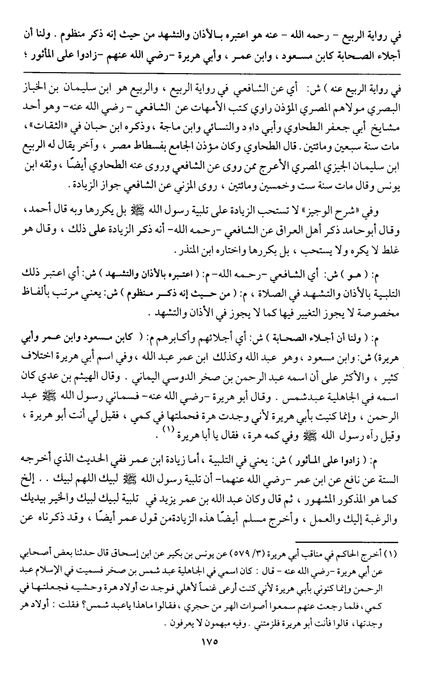 في رواية الربيع - رَحِمَهُ اللَّهُ - عنه هو اعتبره بالأذان والتشهد من حيث إنه ذكر منظوم. ولنا أن أجلاء الصحابة كابن مسعود، وابن عمر، وأبي هريرة - رَضِيَ اللَّهُ عَنْهُمْ - زادوا على المأثور؛