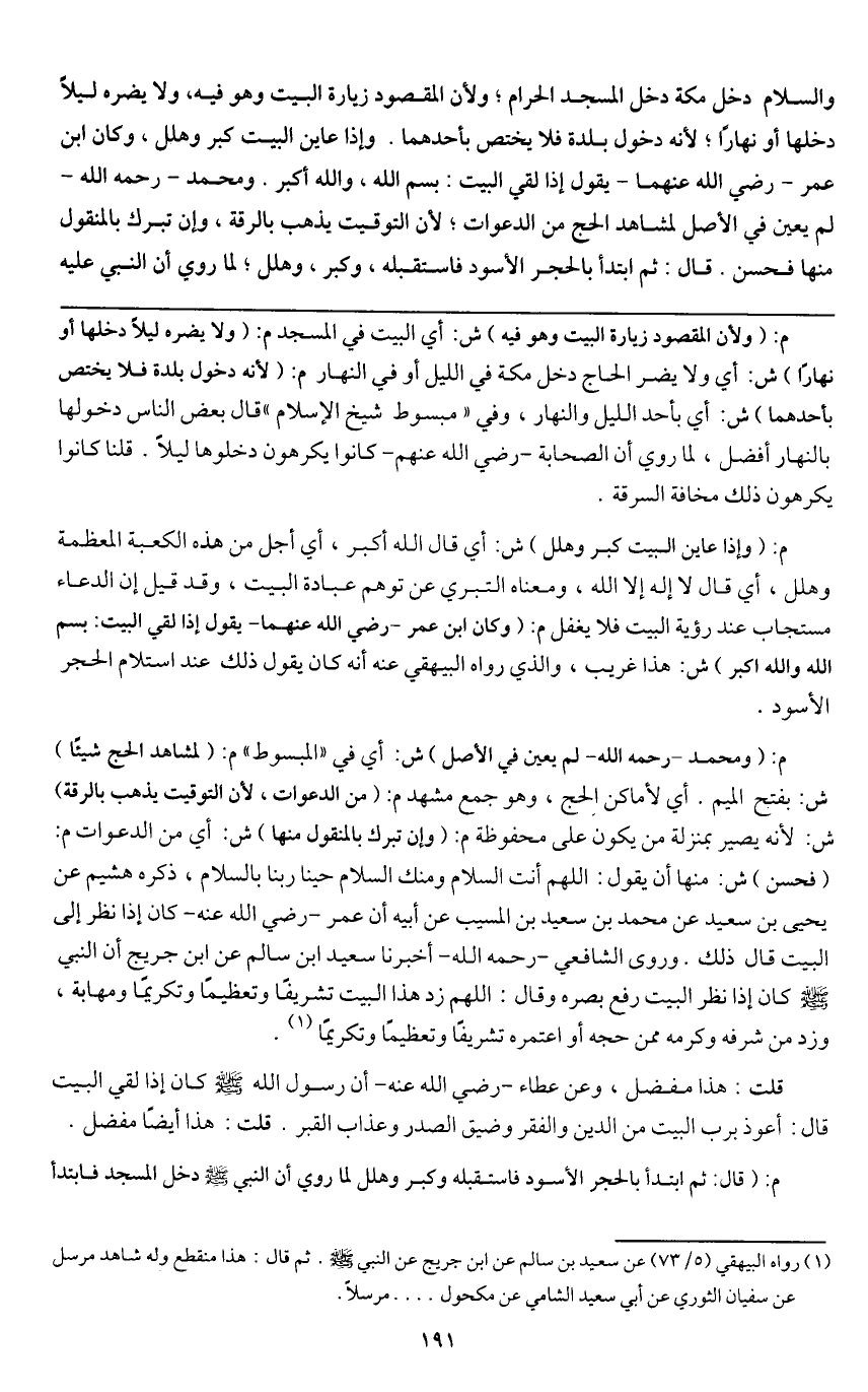 قلت: هذا مفضل، وعن عطاء - رَضِيَ اللَّهُ عَنْهُ - «أن رسول الله - صَلَّى اللَّهُ عَلَيْهِ وَسَلَّمَ - كان إذا لقي البيت قال: أعوذ برب البيت من الدين والفقر وضيق الصدر وعذاب القبر» . قلت: هذا أيضاً مفضل.