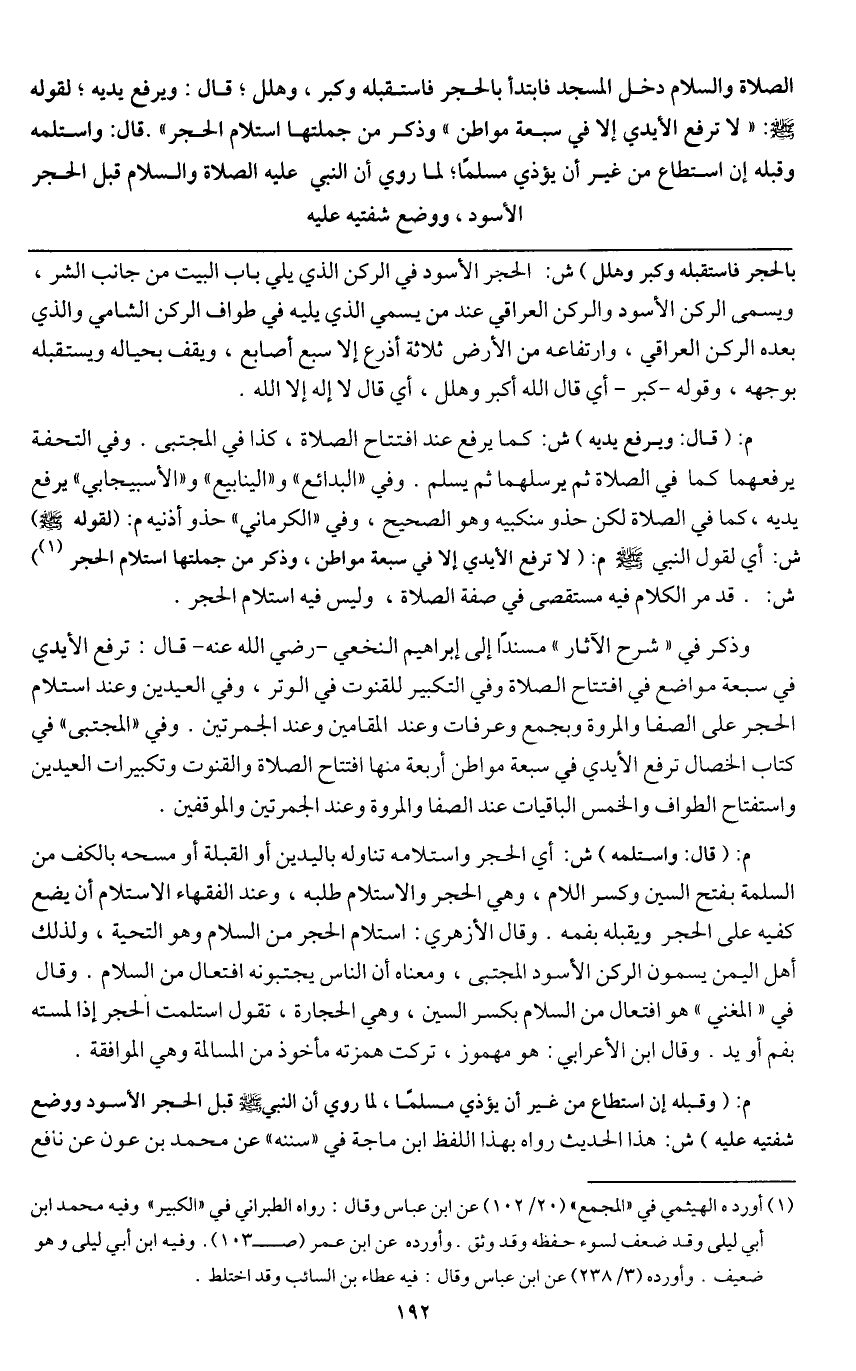 ـــــــــــــــــــــــــــــQبالحجر فاستقبله وكبر وهلل) ش: الحجر الأسود في الركن الذي يلي باب البيت من جانب الشر، ويسمى الركن الأسود والركن العراقي عند من يسمي الذي يليه في طواف الركن الشامي والذي بعده الركن العراقي، وارتفاعه من الأرض ثلاثة أذرع إلا سبع أصابع، ويقف بحياله ويستقبله بوجهه، وقوله - كبر - أي قال الله أكبر وهلل، أي قال لا إله إلا الله.