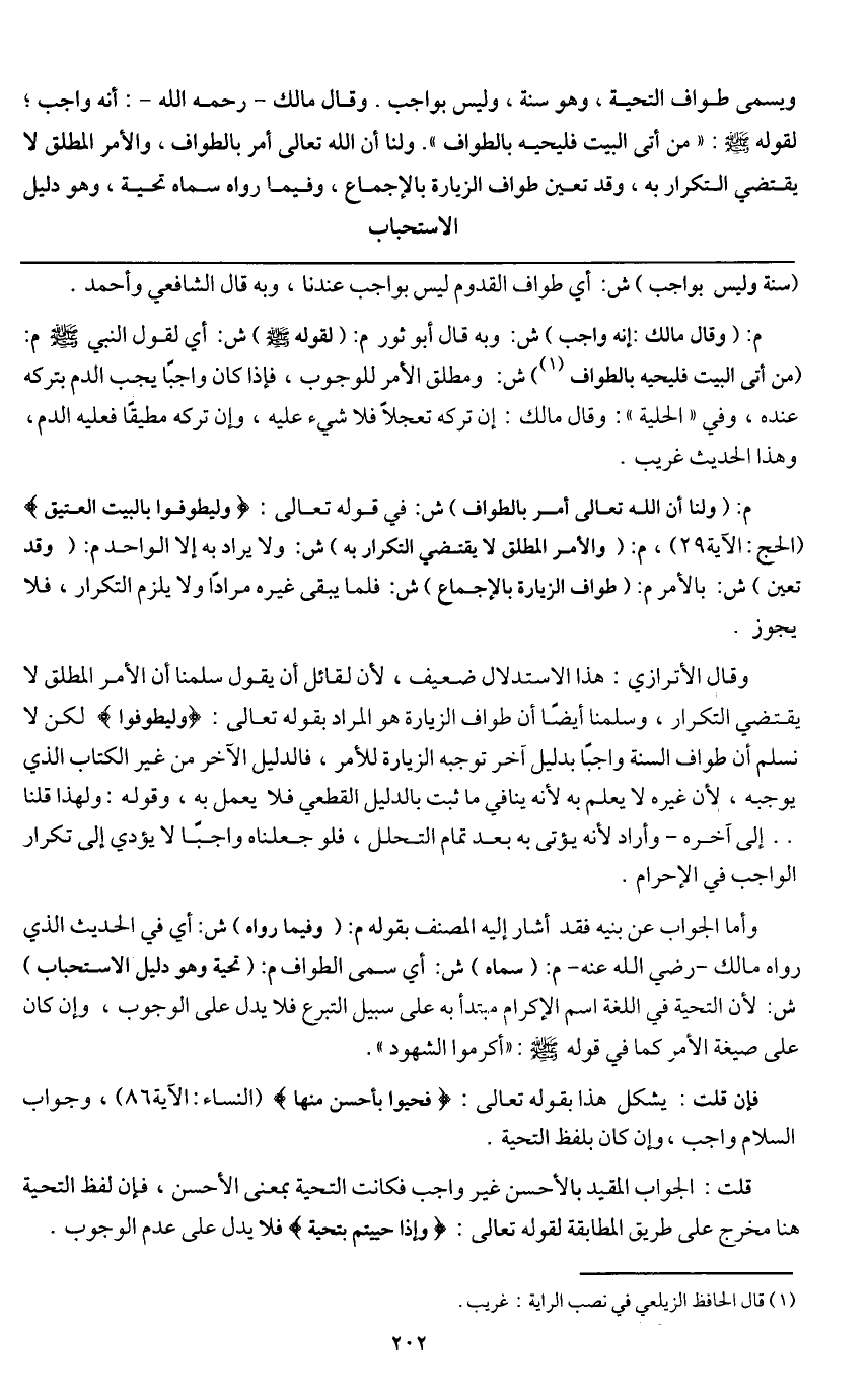 ـــــــــــــــــــــــــــــQ (سنة وليس بواجب) ش: أي طواف القدوم ليس بواجب عندنا، وبه قال الشافعي وأحمد.