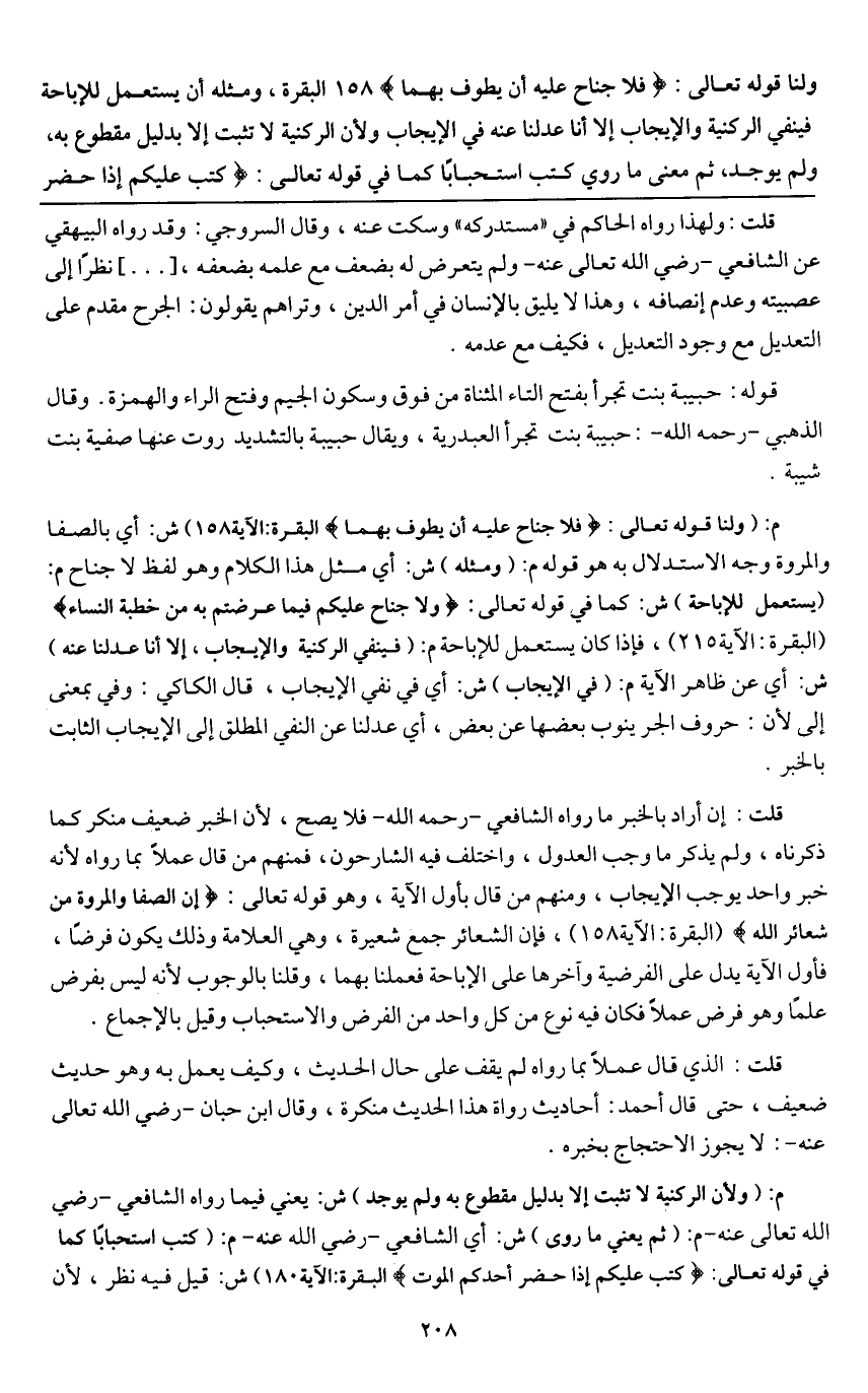 قلت: إن أراد بالخبر ما رواه الشافعي - رَحِمَهُ اللَّهُ - فلا يصح، لأن الخبر ضعيف منكر كما ذكرناه، ولم يذكر ما وجب العدول، واختلف فيه الشارحون، فمنهم من قال عملاً بما رواه لأنه خبر واحد يوجب الإيجاب، ومنهم من قال بأول الآية، وهو قَوْله تَعَالَى: {إِنَّ الصَّفَا وَالْمَرْوَةَ مِنْ شَعَائِرِ اللَّهِ} [البقرة: 158] [البقرة: الآية 158] ، فإن الشعائر جمع شعيرة، وهي العلامة وذلك يكون فرضاً، فأول الآية يدل على الفرضية وآخرها على الإباحة فعلمنا بهما، وقلنا بالوجوب لأنه ليس بفرض علماً وهو فرض عملاً فكان فيه نوع من كل واحد من الفرض والاستحباب وقيل بالإجماع.