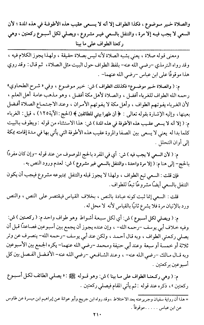 ـــــــــــــــــــــــــــــQومعنى قوله صلاة، يعني يشبه الصلاة لأنه ليس بصلاة حقيقة، ولهذا يجوز الكلام فيه، وقد رواه الترمذي - رَضِيَ اللَّهُ عَنْهُ - بلفظ الطواف حول البيت مثل الصلاة، ثم قال: وقد روي هذا موقوفاً على ابن عباس - رَضِيَ اللَّهُ عَنْهُمَا -.