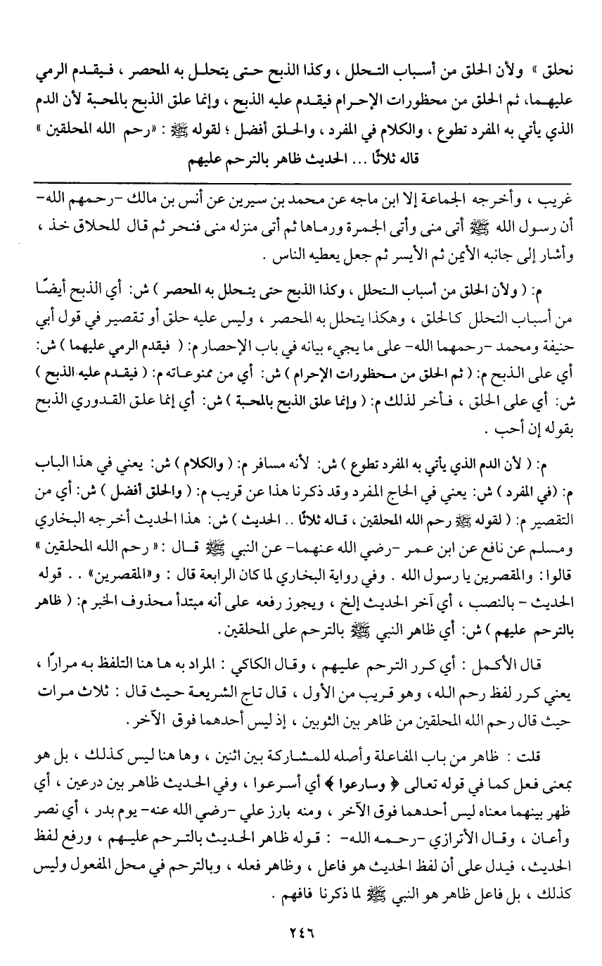 قوله الحديث - بالنصب، أي آخر الحديث إلخ، ويجوز رفعه على أنه مبتدأ محذوف الخبر م: (ظاهر بالترحم عليهم) ش: أي ظاهر النبي - صَلَّى اللَّهُ عَلَيْهِ وَسَلَّمَ - بالترحم على المحلقين.