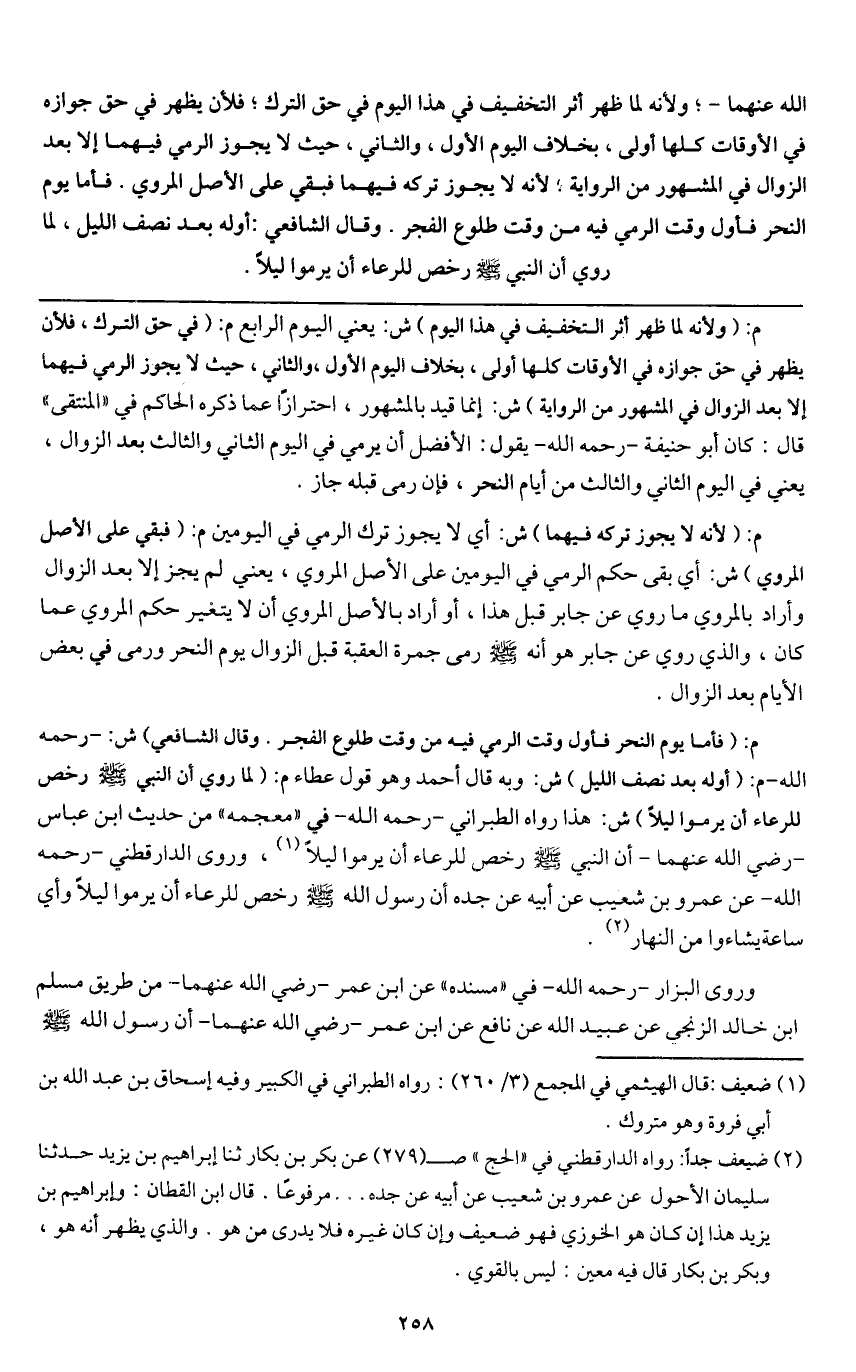 الله عنهما -؛ ولأنه لما ظهر أثر التخفيف في هذا اليوم في حق الترك؛ فلأن يظهر في حق جوازه في الأوقات كلها أولى، بخلاف اليوم الأول، والثاني، حيث لا يجوز الرمي فيهما إلا بعد الزوال في المشهور من الرواية، لأنه لا يجوز تركه فيهما فبقي على الأصل المروي.