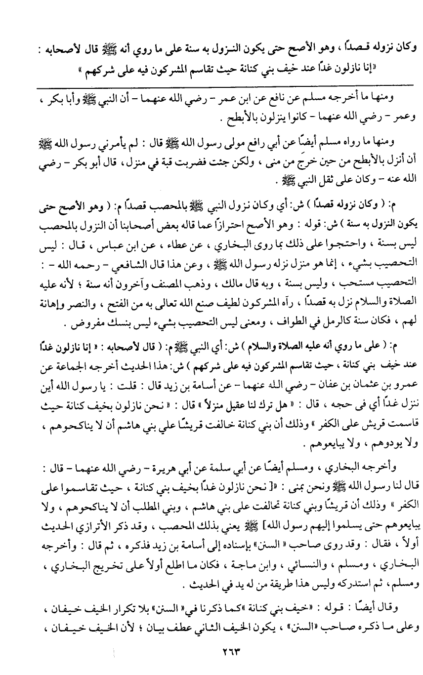 ـــــــــــــــــــــــــــــQومنها ما أخرجه مسلم عن نافع عن ابن عمر - رَضِيَ اللَّهُ عَنْهُمَا - «أن النبي - صَلَّى اللَّهُ عَلَيْهِ وَسَلَّمَ - وأبا بكر، وعمر - رَضِيَ اللَّهُ عَنْهُمَا - كانوا ينزلون بالأبطح» .
