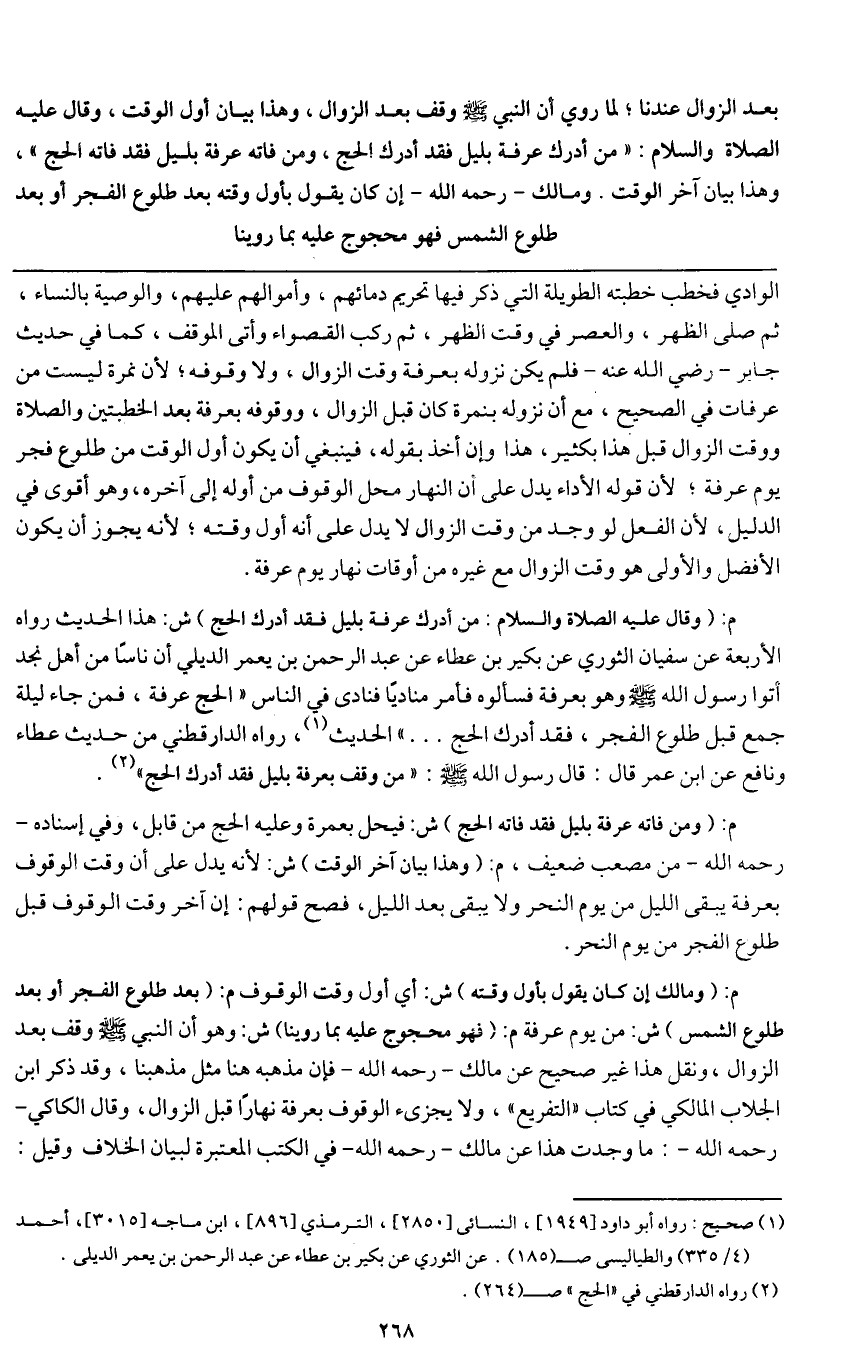 «ومن فاته عرفة بليل فقد فاته الحج» ، وهذا بيان آخر الوقت. ومالك - رَحِمَهُ اللَّهُ - إن كان يقول: إن أول وقته بعد طلوع الفجر أو بعد طلوع الشمس فهو محجوج عليه بما روينا