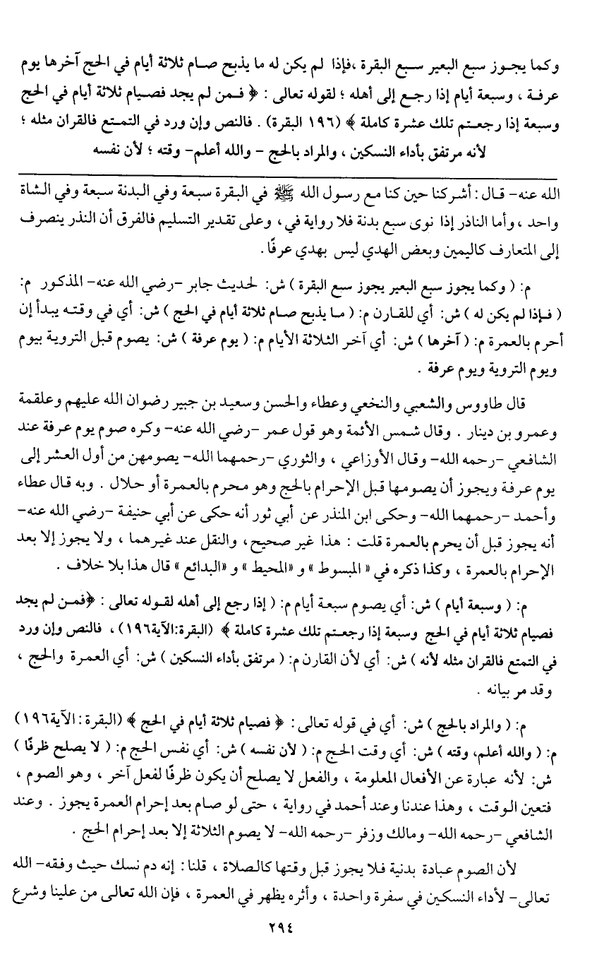 م: (وكما يجوز سبع البعير يجوز سبع البقرة) ش: لحديث جابر - رَضِيَ اللَّهُ عَنْهُ - المذكور م: (فإذا لم يكن له) ش: أي للقارن م: (ما يذبح صام ثلاثة أيام في الحج) ش: أي في وقته يبدأ إن أحرم بالعمرة م: (آخرها) ش: أي آخر الثلاثة الأيام م: (يوم عرفة) ش: يصوم قبل التروية بيوم ويوم التروية ويوم عرفة.
