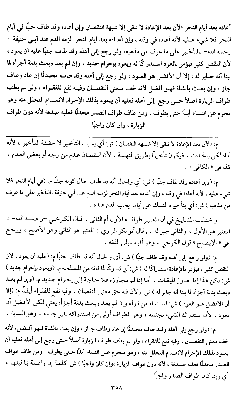 واختلف المشايخ في أن المعتبر طوافه الأول أم الثاني. قال الكرخي - رَحِمَهُ اللَّهُ -: المعتبر هو الأول، والثاني جبر له. وقال أبو بكر الرازي: المعتبر هو الثاني وهو الأصح، ورجح في " الإيضاح " قول الكرخي، وهو أقرب إلى الفقه.