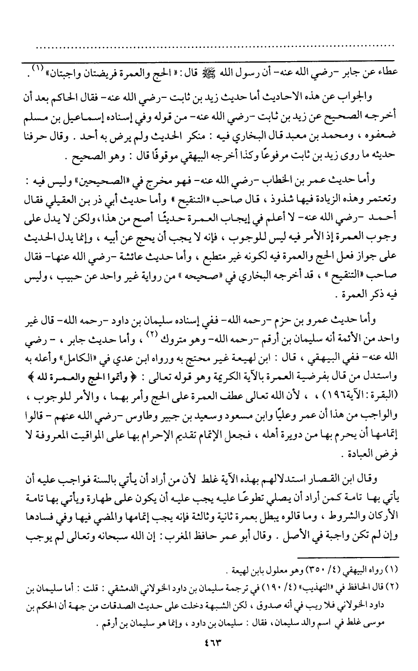 ـــــــــــــــــــــــــــــQعطاء عن جابر - رَضِيَ اللَّهُ عَنْهُ - أن رسول الله - صَلَّى اللَّهُ عَلَيْهِ وَسَلَّمَ - قال: «الحج والعمرة فريضتان واجبتان» .