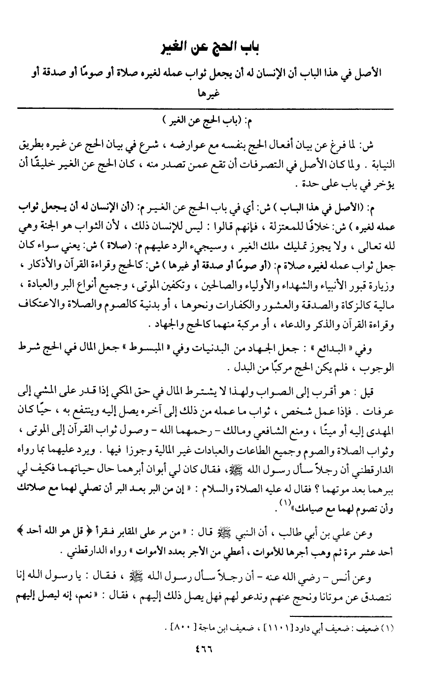 باب الحج عن الغير الأصل في هذا الباب أن الإنسان له أن يجعل ثواب عمله لغيره صلاة أو صوما أو صدقة أو غيرها،