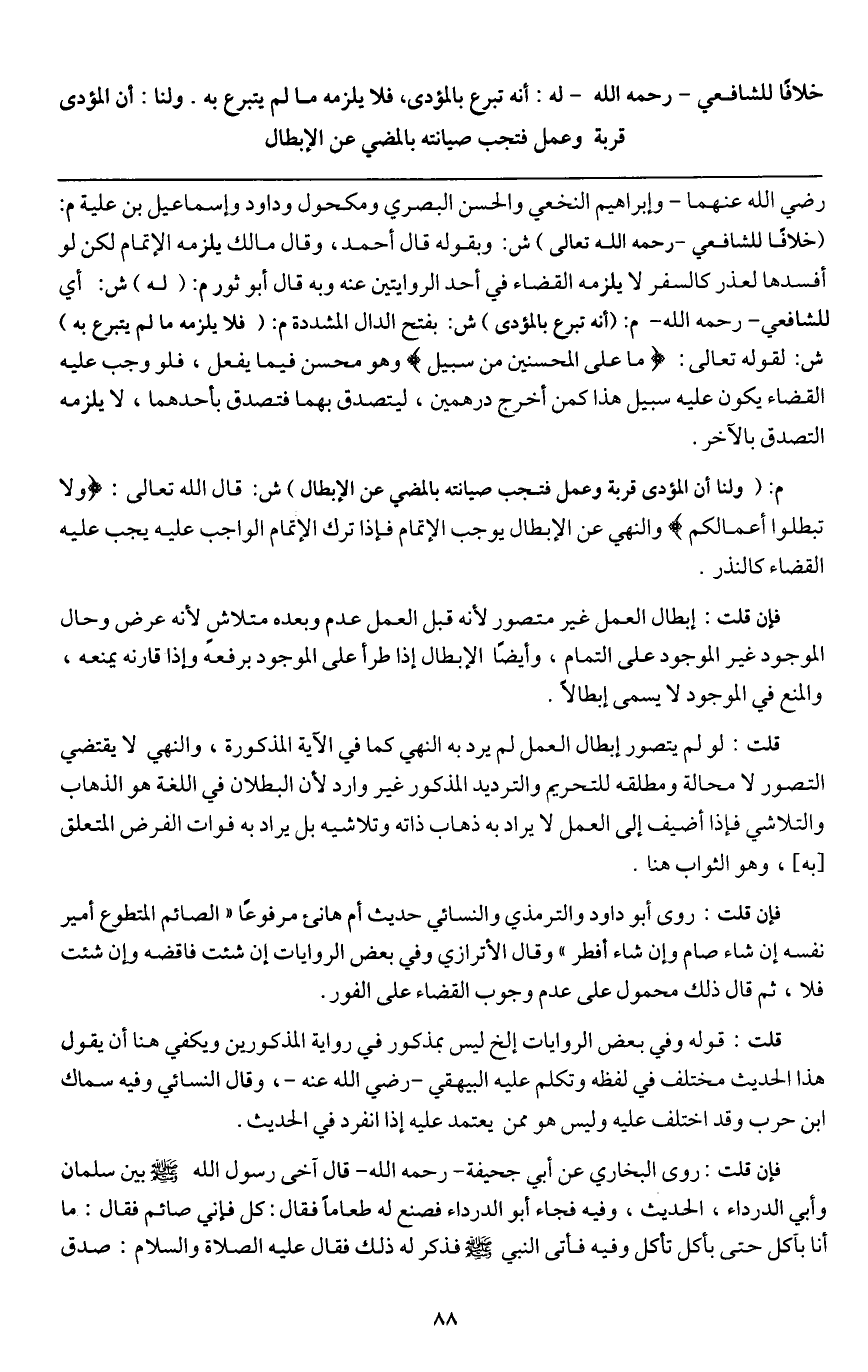 قلت: لو لم يتصور إبطال العمل لم يرد به النهي كما في الآية المذكورة، والنهي لا يقتضي التصور لا محالة ومطلقه للتحريم والترديد المذكور غير وارد لأن البطلان في اللغة هو الذهاب والتلاشي فإذا أضيف إلى العمل لا يراد به ذهاب ذاته وتلاشيه بل يراد به فوات الفرض المتعلق [به] ، وهو الثواب هنا.