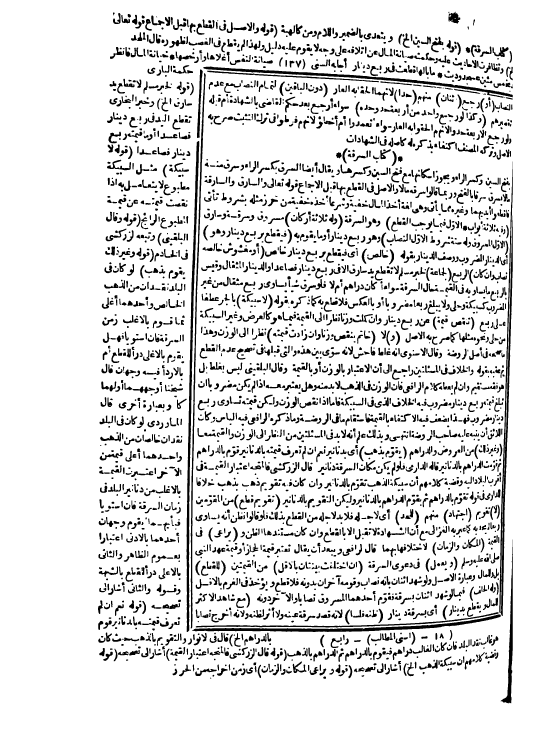 (قَوْلُهُ لِخَبَرِ مُسْلِمٍ «لَا تُقْطَعُ يَدُ سَارِقٍ» إلَخْ) وَخَبَرُ الْبُخَارِيِّ «تُقْطَعُ الْيَدُ فِي رُبْعِ دِينَارٍ فَصَاعِدًا أَوْ مَا قِيمَتُهُ رُبْعُ دِينَارٍ فَصَاعِدًا» (قَوْلُهُ لَا سَبِيكَةٍ) مِثْلُ السَّبِيكَةِ مَطْبُوعٌ لَا يُتَعَامَلُ بِهِ إذَا نَقَصَتْ قِيمَتُهُ عَنْ قِيمَةِ الْمَطْبُوعِ الرَّائِجِ (قَوْلُهُ وَقَالَ الْبُلْقِينِيُّ) وَتَبِعَهُ الزَّرْكَشِيُّ فِي الْخَادِمِ (قَوْلُهُ وَغَيْرُ ذَلِكَ يُقَوَّمُ بِذَهَبٍ) لَوْ كَانَ فِي الْبَلَدِ نَقْدَانِ مِنْ الذَّهَبِ الْخَالِصِ وَأَحَدُهُمَا أَغْلَى ثَمَنًا قُوِّمَ بِالْأَغْلَبِ زَمَنَ السَّرِقَةِ فَإِنْ اسْتَوَيَا فَهَلْ يُقَوَّمُ بِالْأَغْلَى دَرْءً لِلْقَطْعِ أَمْ بِالْأَرْدَأِ؛ فِيهِ وَجْهَانِ قَالَ شَيْخُنَا أَوْجَهُهُمَا أَوَّلُهُمَا كا وَبِعِبَارَةٍ أُخْرَى قَالَ الْمَاوَرْدِيُّ لَوْ كَانَ فِي الْبَلَدِ نَقْدَانِ خَالِصَانِ مِنْ الذَّهَبِ، وَأَحَدُهُمَا أَعْلَى قِيمَةً مِنْ الْآخَرِ اُعْتُبِرَتْ الْقِيمَةُ بِالْأَغْلَبِ مِنْ دَنَانِيرِ الْبَلَدِ فِي زَمَانِ السَّرِقَةِ، فَإِنْ اسْتَوَيَا فَبِأَيِّهِمَا يُقَوَّمُ وَجْهَانِ أَحَدُهُمَا بِالْأَدْنَى اعْتِبَارًا بِعُمُومِ الظَّاهِرِ وَالثَّانِي بِالْأَعْلَى دَرْءً لِلْقَطْعِ بِالشُّبْهَةِ وَقَوْلُهُ وَالثَّانِي أَشَارَ إلَى تَصْحِيحِهِ (قَوْلُهُ نَعَمْ إنْ لَمْ تُعْرَفْ قِيمَتُهُ بِالدَّنَانِيرِ قُوِّمَ بِالدَّرَاهِمِ إلَخْ) قَالَ فِي الْأَنْوَارِ: وَالتَّقْوِيمُ بِالذَّهَبِ حَيْثُ كَانَ هُوَ غَالِبَ نَقْدِ الْبَلَدِ، فَإِنْ كَانَ الْغَالِبُ دَرَاهِمَ فَيُقَوَّمُ بِالدَّرَاهِمِ ثُمَّ الدَّرَاهِمُ بِالذَّهَبِ (قَوْلُهُ قَالَ الزَّرْكَشِيُّ فَالْمُتَّجَهُ اعْتِبَارُ الْقِيمَةِ) أَشَارَ إلَى تَصْحِيحِهِ (قَوْلُهُ وَقَضِيَّةُ كَلَامِهِمْ أَنَّ سَبِيكَةَ الذَّهَبِ إلَخْ) أَشَارَ إلَى تَصْحِيحِهِ (قَوْلُهُ وَيُرَاعَى الْمَكَانُ وَالزَّمَانُ) أَيْ زَمَنُ إخْرَاجِهِ مِنْ الْحِرْزِ