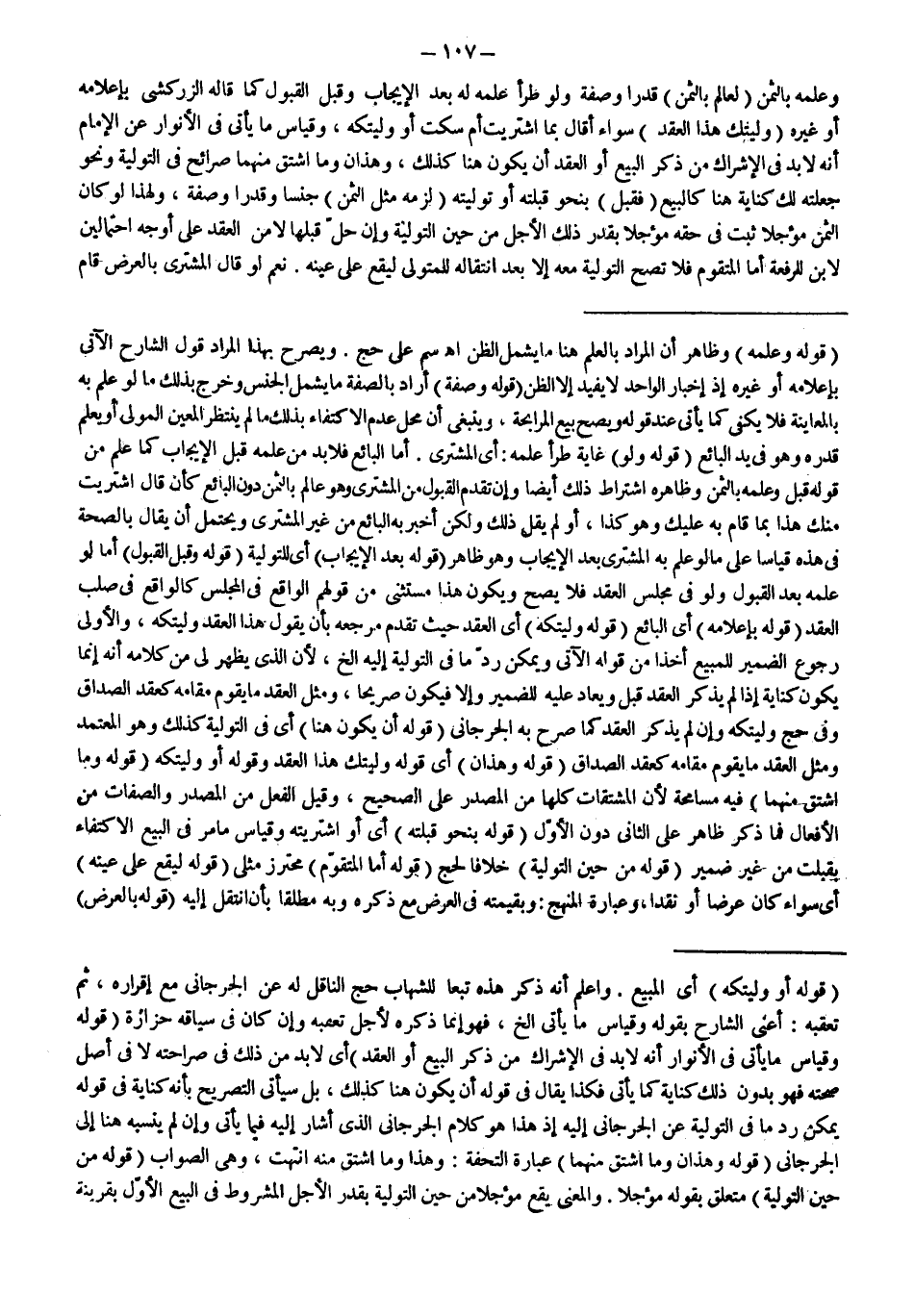 ـــــــــــــــــــــــــــــQقَوْلُهُ: أَوْ وَلَّيْتُكَهُ) أَيْ الْمَبِيعَ، وَاعْلَمْ أَنَّهُ ذَكَرَ هَذِهِ تَبَعًا لِلشِّهَابِ حَجّ النَّاقِلِ لَهُ عَنْ الْجُرْجَانِيِّ مَعَ إقْرَارِهِ، ثُمَّ تَعَقَّبَهُ: أَعْنِي الشَّارِحَ بِقَوْلِهِ وَقِيَاسُ مَا يَأْتِي إلَخْ، فَهُوَ إنَّمَا ذَكَرَهُ لِأَجْلِ تَعَقُّبِهِ وَإِنْ كَانَ فِي سِيَاقِهِ حَزَازَةٌ. (قَوْلُهُ: وَقِيَاسُ مَا يَأْتِي فِي الْأَنْوَارِ أَنَّهُ لَا بُدَّ فِي الْإِشْرَاكِ مِنْ ذِكْرِ الْبَيْعِ أَوْ الْعَقْدِ) أَيْ: لَا بُدَّ مِنْ ذَلِكَ فِي صَرَاحَتِهِ لَا فِي أَصْلِ صِحَّتِهِ فَهُوَ بِدُونِ ذَلِكَ كِنَايَةٌ كَمَا يَأْتِي فَكَذَا يُقَالُ فِي قَوْلِهِ أَنْ يَكُونَ هُنَا كَذَلِكَ، بَلْ سَيَأْتِي التَّصْرِيحُ بِأَنَّهُ كِنَايَةٌ فِي قَوْلِهِ يُمْكِنُ رَدُّ مَا فِي التَّوْلِيَةِ عَنْ الْجُرْجَانِيِّ إلَيْهِ إذْ هَذَا هُوَ كَلَامُ الْجُرْجَانِيِّ الَّذِي أَشَارَ إلَيْهِ فِيمَا يَأْتِي وَإِنْ لَمْ يَنْسُبْهُ هُنَا إلَى الْجُرْجَانِيِّ (قَوْلُهُ: وَهَذَانِ وَمَا اُشْتُقَّ مِنْهُمَا) عِبَارَةُ التُّحْفَةِ: وَهَذَا وَمَا اُشْتُقَّ مِنْهُ انْتَهَتْ، وَهِيَ الصَّوَابُ (قَوْلُهُ: مِنْ حِينِ التَّوْلِيَةِ) مُتَعَلِّقٌ بِقَوْلِهِ مُؤَجَّلًا.