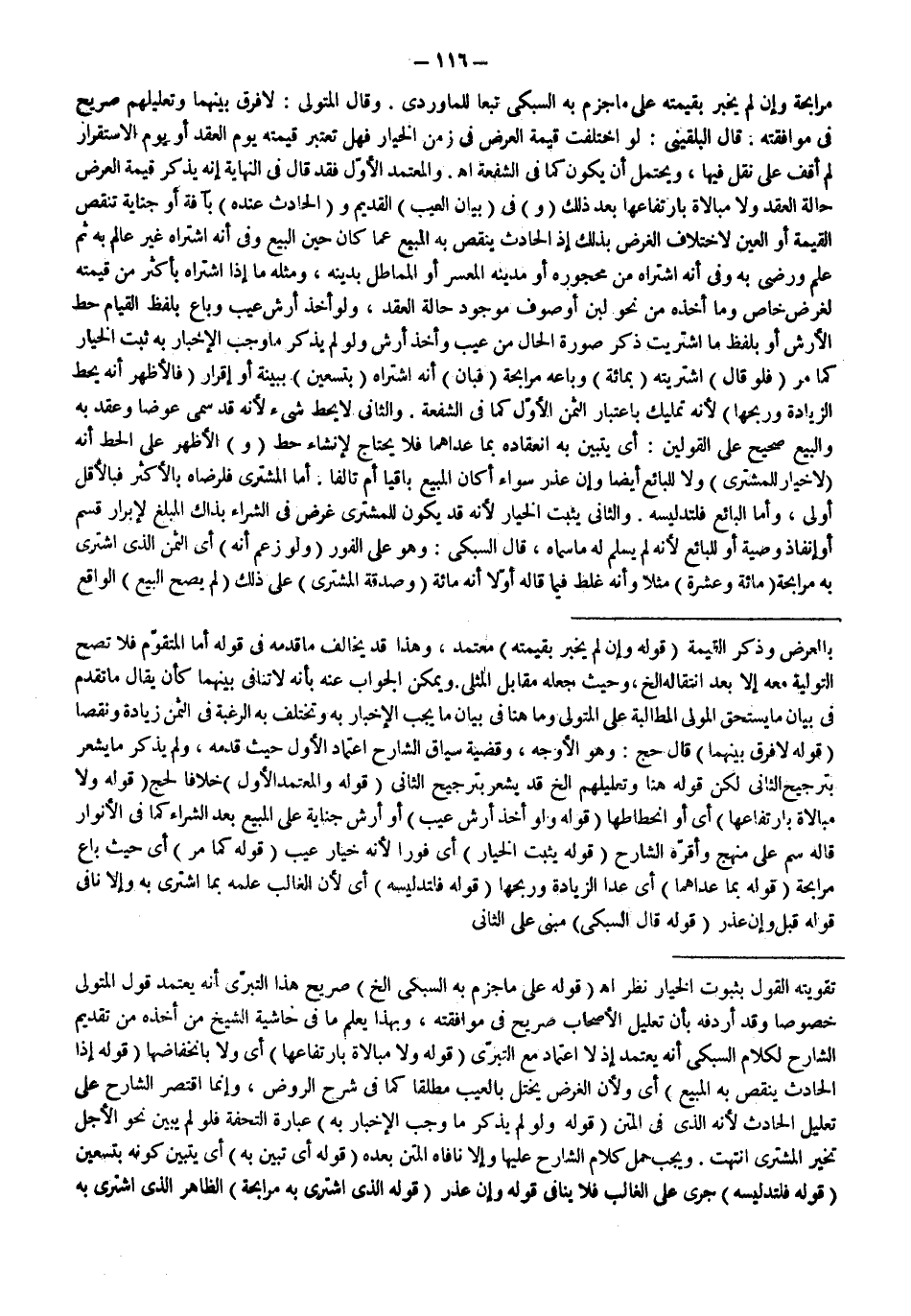 . (قَوْلُهُ: عَلَى مَا جَزَمَ بِهِ السُّبْكِيُّ إلَخْ) صَرِيحُ هَذَا التَّبَرِّي أَنَّهُ يَعْتَمِدُ قَوْلَ الْمُتَوَلِّي خُصُوصًا وَقَدْ أَرْدَفَهُ بِأَنَّ تَعْلِيلَ الْأَصْحَابِ صَرِيحٌ فِي مُوَافَقَتِهِ، وَبِهَذَا يُعْلَمُ مَا فِي حَاشِيَةِ الشَّيْخِ مِنْ أَخْذِهِ مِنْ تَقْدِيمِ الشَّارِحِ لِكَلَامِ السُّبْكِيّ أَنَّهُ يَعْتَمِدُهُ؛ إذْ لَا اعْتِمَادَ مَعَ التَّبَرِّي. (قَوْلُهُ: وَلَا مُبَالَاةَ بِارْتِفَاعِهَا) أَيْ وَلَا بِانْخِفَاضِهَا. (قَوْلُهُ: إذْ الْحَادِثُ يَنْقُصُ بِهِ الْمَبِيعُ) أَيْ؛ وَلِأَنَّ الْغَرَضَ يَخْتَلُّ بِالْعَيْبِ مُطْلَقًا كَمَا فِي شَرْحِ الرَّوْضِ، وَإِنَّمَا اقْتَصَرَ الشَّارِحُ عَلَى تَعْلِيلِ الْحَادِثِ؛ لِأَنَّهُ الَّذِي فِي الْمَتْنِ. (قَوْلُهُ: وَلَوْ لَمْ يَذْكُرْ مَا وَجَبَ الْإِخْبَارُ بِهِ) عِبَارَةُ التُّحْفَةِ فَلَوْ لَمْ يُبَيِّنْ نَحْوَ الْأَجَلِ تَخَيَّرَ الْمُشْتَرِي انْتَهَتْ.