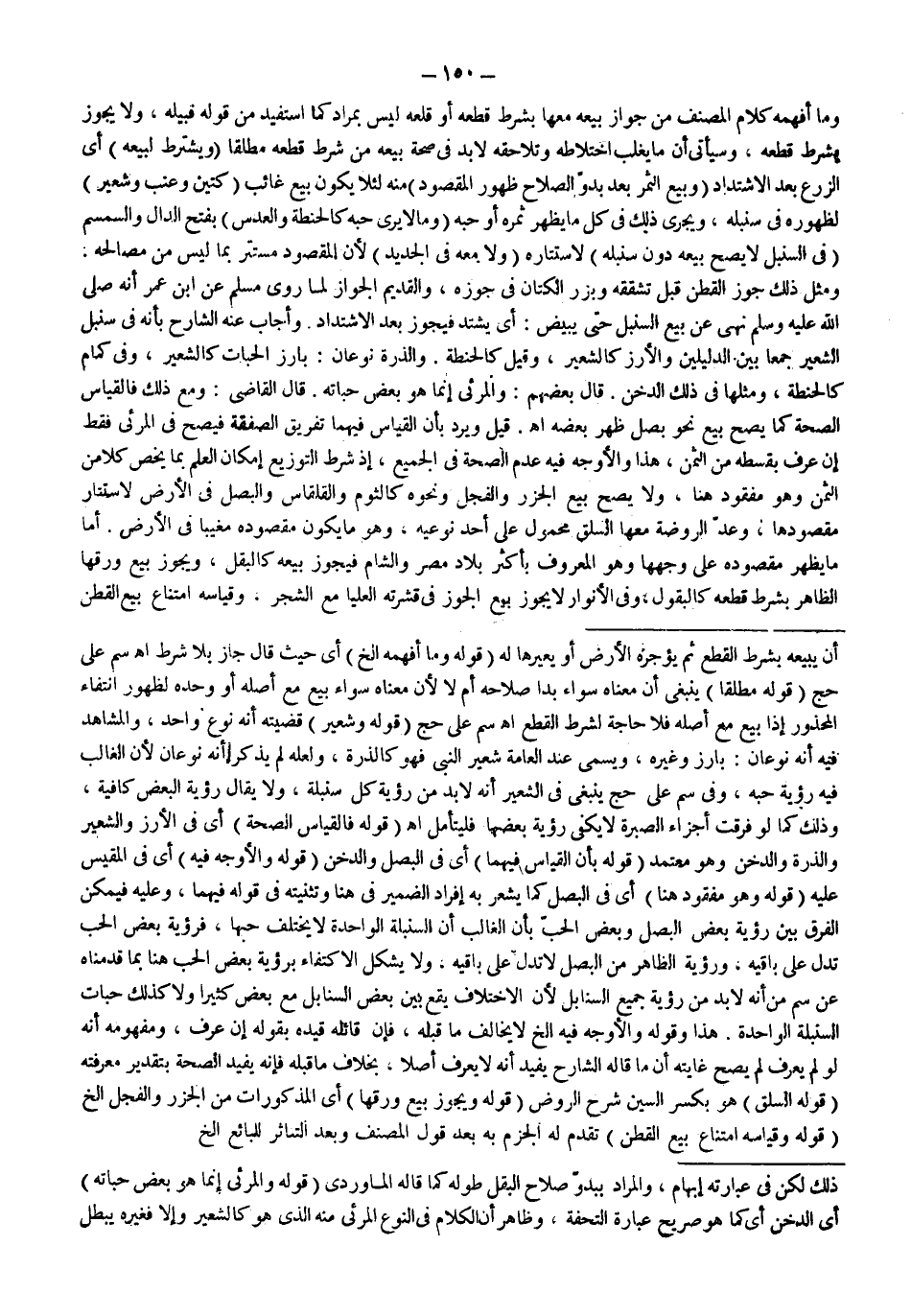 وَيُسَمَّى عِنْدَ الْعَامَّةِ شَعِيرُ النَّبِيِّ فَهُوَ كَالذُّرَةِ، وَلَعَلَّهُ لَمْ يَذْكُرْ إنَّهُ نَوْعَانِ؛ لِأَنَّ الْغَالِبَ فِيهِ رُؤْيَةُ حَبِّهِ، وَفِي سم عَلَى حَجّ يَنْبَغِي فِي الشَّعِيرِ أَنَّهُ لَا بُدَّ مِنْ رُؤْيَةِ كُلِّ سُنْبُلَةٍ، وَلَا يُقَالُ رُؤْيَةُ الْبَعْضِ كَافِيَةٌ، وَذَلِكَ كَمَا لَوْ فُرِّقَتْ أَجْزَاءُ الصُّبْرَةِ لَا يَكْفِي رُؤْيَةُ بَعْضِهَا فَلْيُتَأَمَّلْ اهـ (قَوْلُهُ: فَالْقِيَاسُ الصِّحَّةُ) أَيْ فِي الْأُرْزِ وَالشَّعِيرِ وَالذُّرَةِ وَالدُّخْنِ وَهُوَ مُعْتَمَدٌ (قَوْلُهُ: أَنَّ الْقِيَاسَ فِيهِمَا) أَيْ فِي الْبَصَلِ وَالدُّخْنِ (قَوْلُهُ: وَالْأَوْجَهُ فِيهِ) أَيْ فِي الْمَقِيسِ عَلَيْهِ (قَوْلُهُ: وَهُوَ مَفْقُودٌ هُنَا) أَيْ فِي الْبَصَلِ كَمَا يَشْعُرُ بِهِ إفْرَادُ الضَّمِيرِ فِي هُنَا وَتَثْنِيَتُهُ فِي قَوْلِهِ فِيهِمَا، وَعَلَيْهِ فَيُمْكِنُ الْفَرْقُ بَيْنَ رُؤْيَةِ بَعْضِ الْبَصَلِ وَبَعْضِ الْحَبِّ بِأَنَّ الْغَالِبَ أَنَّ السُّنْبُلَةَ الْوَاحِدَةَ لَا يَخْتَلِفُ حَبُّهَا، فَرُؤْيَةُ بَعْضِ الْحَبِّ تَدُلُّ عَلَى بَاقِيهِ، وَرُؤْيَةُ الظَّاهِرِ مِنْ الْبَصَلِ لَا تَدُلُّ عَلَى بَاقِيهِ، وَلَا يُشْكِلُ الِاكْتِفَاءُ بِرُؤْيَةِ بَعْضِ الْحَبِّ هُنَا بِمَا قَدَّمْنَاهُ عَنْ سم مِنْ أَنَّهُ لَا بُدَّ مِنْ رُؤْيَةِ جَمِيعِ السَّنَابِلِ لِأَنَّ الِاخْتِلَافَ يَقَعُ بَيْنَ بَعْضِ السَّنَابِلِ مَعَ بَعْضٍ كَثِيرًا وَلَا كَذَلِكَ حَبَّاتُ السُّنْبُلَةِ الْوَاحِدَةِ.