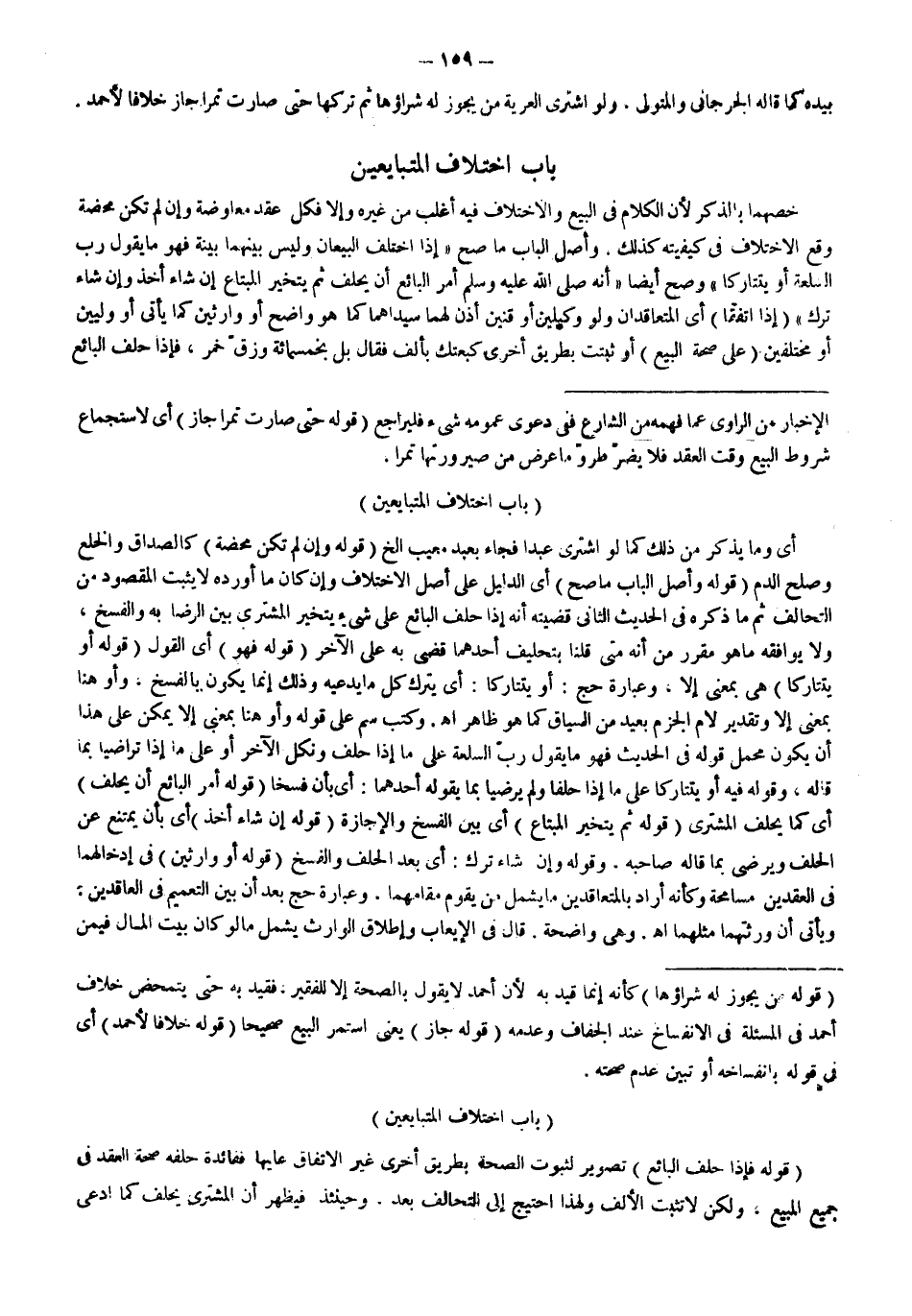 بَابُ اخْتِلَافِ الْمُتَبَايِعَيْنِ خَصَّهُمَا بِالذِّكْرِ لِأَنَّ الْكَلَامَ فِي الْبَيْعِ وَالِاخْتِلَافَ فِيهِ أَغْلَبُ مِنْ غَيْرِهِ وَإِلَّا فَكُلُّ عَقْدٍ مُعَاوَضَةٌ وَإِنْ لَمْ تَكُنْ مَحْضَةً وَقَعَ الِاخْتِلَافُ فِي كَيْفِيَّتِهِ كَذَلِكَ.