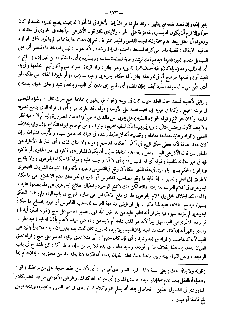 ـــــــــــــــــــــــــــــQقَوْلُهُ: وَلَا يُنَافِي ذَلِكَ) يَعْنِي نِسْبَةَ هَذَا الشَّرْطِ لِلْمَاوَرْدِيِّ فِيمَا مَرَّ: أَيْ؛ لِأَنَّ مَنْ حَفِظَ حُجَّةٌ عَلَى مَنْ لَمْ يَحْفَظْ (قَوْلُهُ: وَدَعْوَاهُ أَنَّ الْعَقْلَ يُبْعِدُ عَدَمَ صِحَّةِ إذْنِهِ لِعَبْدِهِ الْفَاسِقِ وَالْمُبَذِّرِ) أَيْ حَيْثُ بَلَغَا كَذَلِكَ، وَغَرَضُ الْأَذْرَعِيِّ مِنْ هَذَا تَعَقُّبُ كَلَامِ الْمَاوَرْدِيِّ فِي الشُّمُولِ لِهَذَيْنِ.