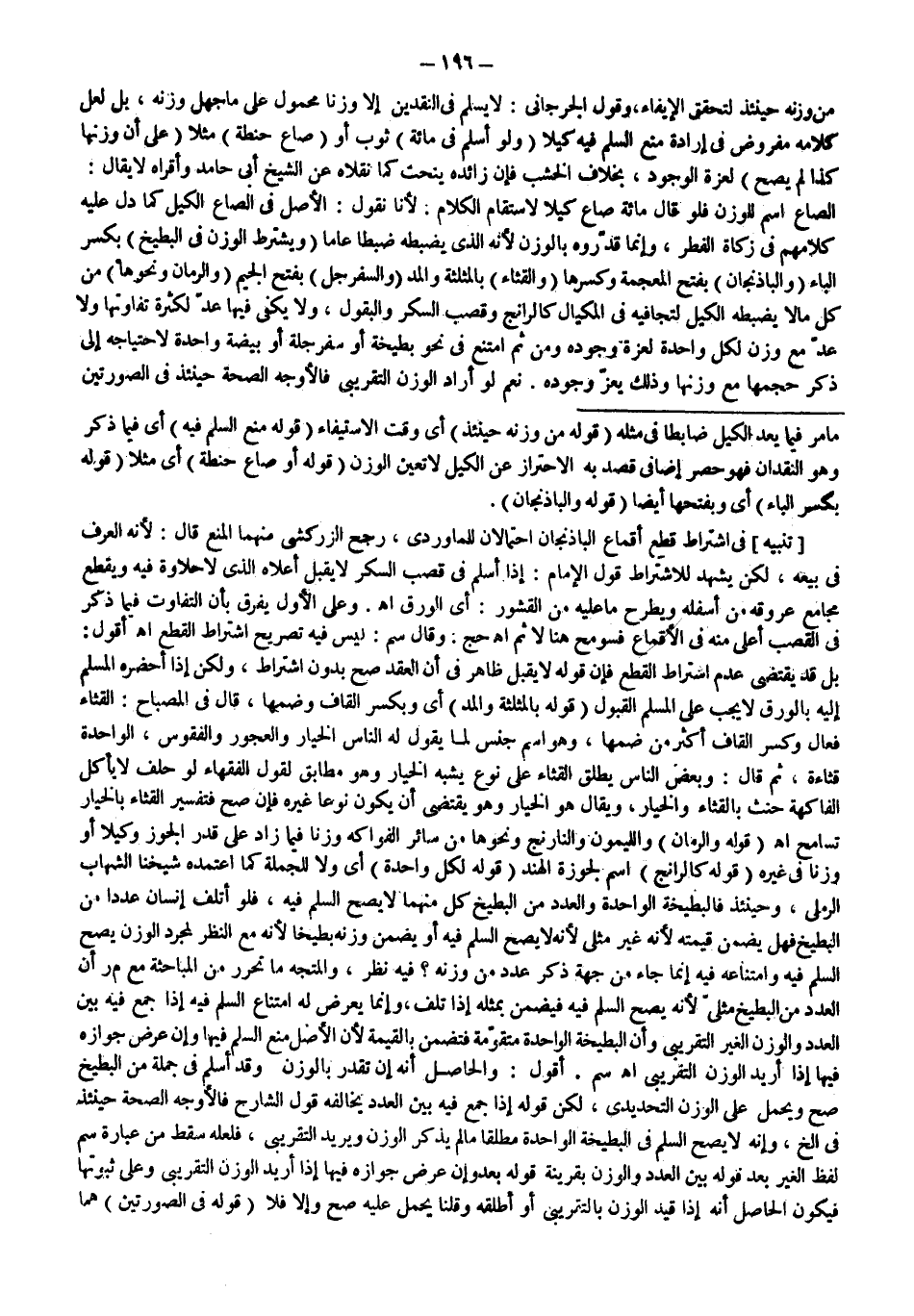 ـــــــــــــــــــــــــــــSمَا مَرَّ فِيمَا يُعَدُّ الْكَيْلُ ضَابِطًا فِي مِثْلِهِ (قَوْلُهُ: مِنْ وَزْنِهِ حِينَئِذٍ) أَيْ وَقْتَ الِاسْتِيفَاءِ (قَوْلُهُ: مَنْعِ السَّلَمِ فِيهِ) أَيْ فِيمَا ذَكَرَ وَهُوَ النَّقْدَانِ فَهُوَ حَصْرٌ إضَافِيٌّ قُصِدَ بِهِ الِاحْتِرَازُ عَنْ الْكَيْلِ لَا تَعَيُّنُ الْوَزْنِ (قَوْلُهُ: أَوْ صَاعِ حِنْطَةٍ) أَيْ مَثَلًا (قَوْلُهُ: بِكَسْرِ الْبَاءِ) أَيْ وَبِفَتْحِهَا أَيْضًا (قَوْلُهُ: وَالْبَاذِنْجَانِ) .