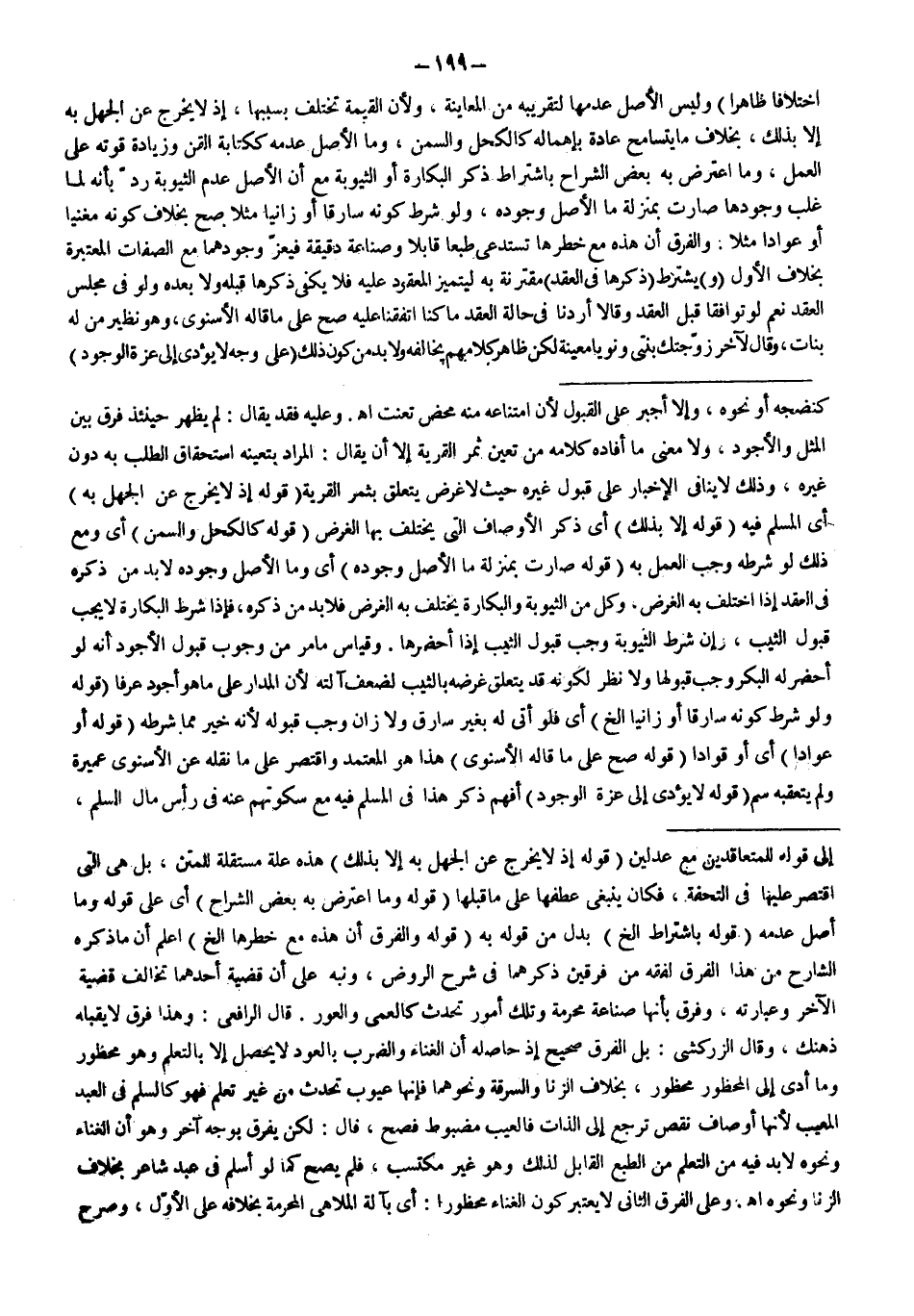 قَالَ الرَّافِعِيُّ: وَهَذَا فَرْقٌ لَا يَقْبَلُهُ ذِهْنُكَ، وَقَالَ الزَّرْكَشِيُّ: بَلْ الْفَرْقُ صَحِيحٌ إذْ حَاصِلُهُ أَنَّ الْغِنَاءَ وَالضَّرْبَ بِالْعُودِ لَا يَحْصُلُ إلَّا بِالتَّعَلُّمِ وَهُوَ مَحْظُورٌ وَمَا أَدَّى إلَى الْمَحْظُورِ مَحْظُورٌ، بِخِلَافِ الزِّنَا وَالسَّرِقَةِ وَنَحْوِهِمَا فَإِنَّهَا عُيُوبٌ تَحْدُثُ مِنْ غَيْرِ تَعَلُّمٍ فَهُوَ كَالسَّلَمِ فِي الْعَبْدِ الْمَعِيبِ؛ لِأَنَّهَا أَوْصَافُ نَقْصٍ تَرْجِعُ إلَى الذَّاتِ فَالْعَيْبُ مَضْبُوطٌ فَصَحَّ، قَالَ: لَكِنْ يُفَرَّقُ بِوَجْهٍ آخَرَ وَهُوَ أَنَّ الْغِنَاءَ وَنَحْوَهُ لَا بُدَّ فِيهِ مِنْ التَّعَلُّمِ مِنْ الطَّبْعِ الْقَابِلِ لِذَلِكَ وَهُوَ غَيْرُ مُكْتَسَبٍ، فَلَمْ يَصِحَّ كَمَا لَوْ أَسْلَمَ فِي عَبْدٍ شَاعِرٍ بِخِلَافِ الزِّنَا وَنَحْوِهِ اهـ.