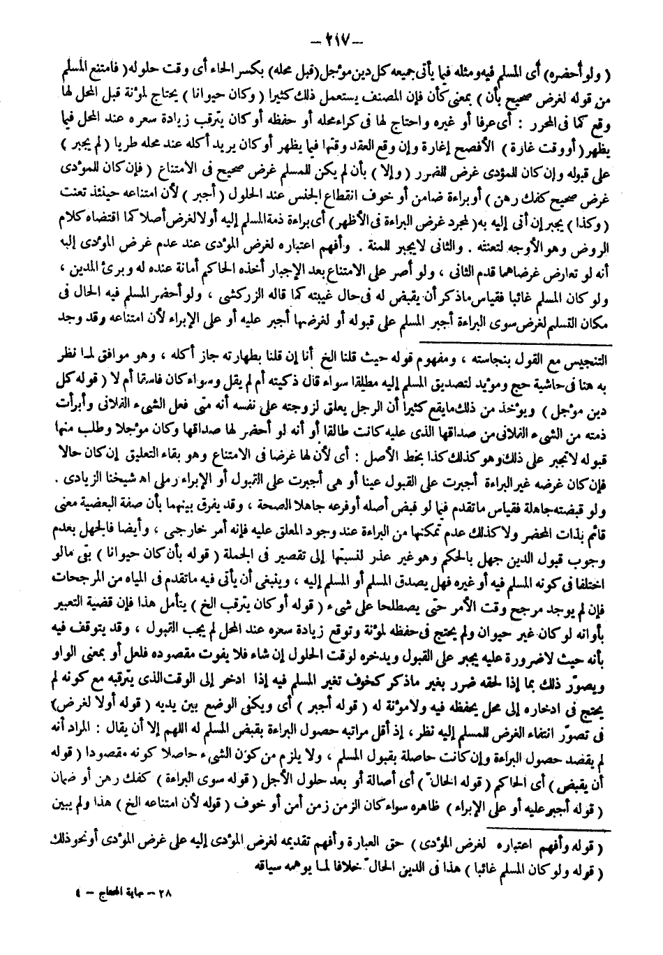 ـــــــــــــــــــــــــــــQ (قَوْلُهُ: وَأَفْهَمَ اعْتِبَارُهُ لِغَرَضِ الْمُؤَدِّي) حَقُّ الْعِبَارَةِ وَأَفْهَمَ تَقْدِيمُهُ لِغَرَضِ الْمُؤَدَّى إلَيْهِ عَلَى غَرَضِ الْمُؤَدِّي أَوْ نَحْوِ ذَلِكَ. (قَوْلُهُ: وَلَوْ كَانَ الْمُسْلِمُ غَائِبًا) هَذَا فِي الدَّيْنِ الْحَالِّ خِلَافًا لِمَا يُوهِمُهُ سِيَاقُهُ.