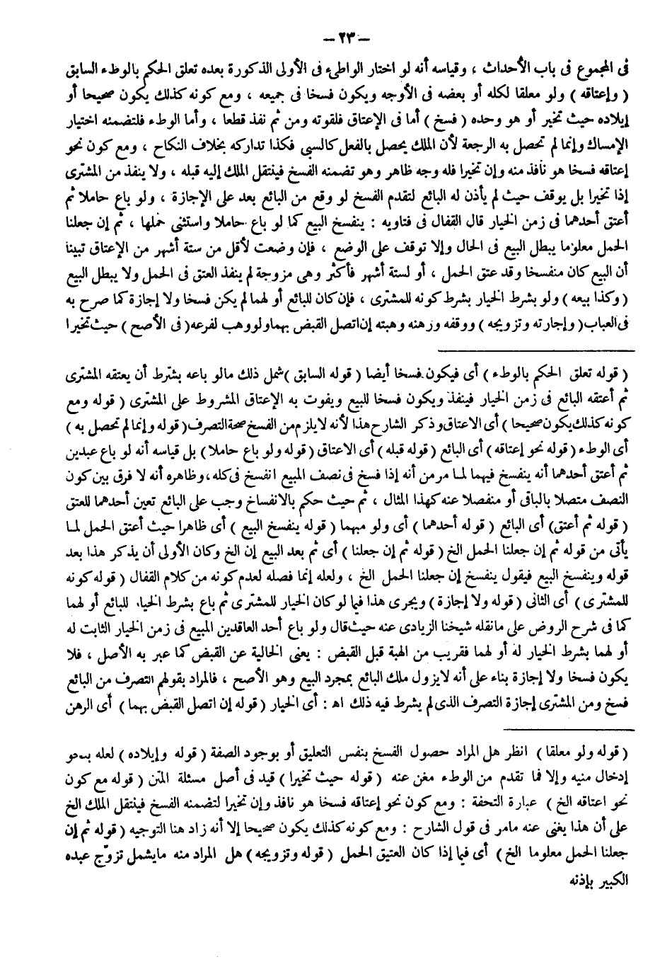 (قَوْلُهُ: حَيْثُ تَخَيَّرَا) قَيْدٌ فِي أَصْلِ مَسْأَلَةِ الْمَتْنِ (قَوْلُهُ: مَعَ كَوْنِ نَحْوِ إعْتَاقِهِ إلَخْ) عِبَارَةُ التُّحْفَةِ: وَمَعَ كَوْنِ نَحْوِ إعْتَاقِهِ فَسْخًا هُوَ نَافِذٌ وَإِنْ تَخَيَّرَا؛ لِتَضَمُّنِهِ الْفَسْخَ فَيَنْتَقِلُ الْمِلْكُ إلَخْ عَلَى أَنَّ هَذَا يُغْنِي عَنْهُ مَا مَرَّ فِي قَوْلِ الشَّارِحِ: وَمَعَ كَوْنِهِ كَذَلِكَ يَكُونُ صَحِيحًا إلَّا أَنَّهُ زَادَ هُنَا التَّوْجِيهَ. (قَوْلُهُ: ثُمَّ إنْ جَعَلْنَا الْحَمْلَ مَعْلُومًا إلَخْ) أَيْ: فِيمَا إذَا كَانَ الْعَتِيقُ الْحَمْلَ (قَوْلُهُ: وَتَزْوِيجُهُ) هَلْ الْمُرَادُ مِنْهُ مَا يَشْمَلُ تَزَوُّجَ عَبْدِهِ الْكَبِيرِ بِإِذْنِهِ