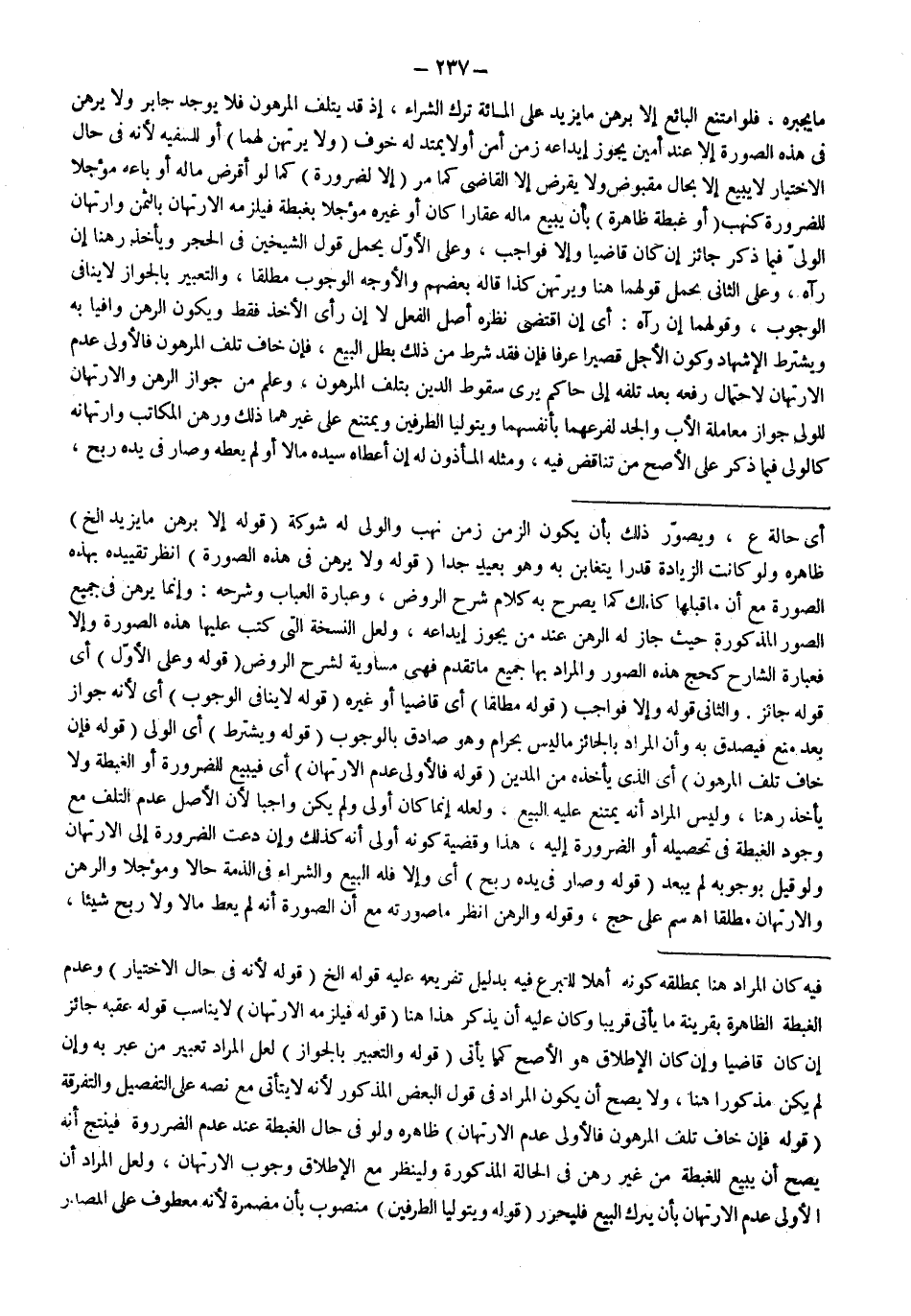 ـــــــــــــــــــــــــــــSأَيْ حَالَةً ع، وَيُصَوَّرُ ذَلِكَ بِأَنْ يَكُونَ الزَّمَنُ زَمَنَ نَهْبٍ وَالْوَلِيُّ لَهُ شَوْكَةٌ (قَوْلُهُ: إلَّا بِرَهْنِ مَا يَزِيدُ إلَخْ) ظَاهِرُهُ وَلَوْ كَانَتْ الزِّيَادَةُ قَدْرًا يَتَغَابَنُ بِهِ وَهُوَ بَعِيدٌ جِدًّا (قَوْلُهُ: وَلَا يَرْهَنُ فِي هَذِهِ الصُّورَةِ) اُنْظُرْ تَقْيِيدَهُ بِهَذِهِ الصُّورَةِ مَعَ أَنَّ مَا قَبْلَهَا كَذَلِكَ كَمَا يُصَرِّحُ بِهِ كَلَامُ شَرْحِ الرَّوْضِ، وَعِبَارَةُ الْعُبَابِ وَشَرْحُهُ: وَإِنَّمَا يَرْهَنُ فِي جَمِيعِ الصُّوَرِ الْمَذْكُورَةِ حَيْثُ جَازَ لَهُ الرَّهْنُ عِنْدَ مَنْ يَجُوزُ إيدَاعُهُ، وَلَعَلَّ النُّسْخَةَ الَّتِي كُتِبَ عَلَيْهَا هَذِهِ الصُّورَةُ وَإِلَّا فَعِبَارَةُ الشَّارِحِ كحج هَذِهِ الصُّوَرُ وَالْمُرَادُ بِهَا جَمِيعُ مَا تَقَدَّمَ فَهِيَ مُسَاوِيَةٌ لِشَرْحِ الرَّوْضِ (قَوْلُهُ: وَعَلَى الْأَوَّلِ) أَيْ قَوْلُهُ جَائِزٌ. وَالثَّانِي قَوْلُهُ وَإِلَّا فَوَاجِبٌ (قَوْلُهُ: مُطْلَقًا) أَيْ قَاضِيًا أَوْ غَيْرَهُ (قَوْلُهُ: لَا يُنَافِي الْوُجُوبَ) أَيْ لِأَنَّهُ جَوَازٌ بَعْدَ مَنْعٍ فَيَصْدُقُ بِهِ وَأَنَّ الْمُرَادَ بِالْجَائِزِ مَا لَيْسَ بِحَرَامٍ وَهُوَ صَادِقٌ بِالْوُجُوبِ (قَوْلُهُ وَيُشْتَرَطُ) أَيْ الْوَلِيُّ (قَوْلُهُ: فَإِنْ خَافَ تَلَفَ الْمَرْهُونِ) أَيْ الَّذِي يَأْخُذُهُ مِنْ الْمَدِينِ (قَوْلُهُ: فَالْأَوْلَى عَدَمُ الِارْتِهَانِ) أَيْ فَيَبِيعُ لِلضَّرُورَةِ أَوْ الْغِبْطَةِ وَلَا يَأْخُذُ رَهْنًا، وَلَيْسَ الْمُرَادُ أَنَّهُ يَمْتَنِعُ عَلَيْهِ الْبَيْعُ، وَلَعَلَّهُ إنَّمَا كَانَ أَوْلَى وَلَمْ يَكُنْ وَاجِبًا لِأَنَّ الْأَصْلَ عَدَمُ التَّلَفِ مَعَ وُجُودِ الْغِبْطَةِ فِي تَحْصِيلِهِ أَوْ الضَّرُورَةِ إلَيْهِ، هَذَا وَقَضِيَّةُ كَوْنِهِ أَوْلَى أَنَّهُ كَذَلِكَ وَإِنْ دَعَتْ الضَّرُورَةُ إلَى الِارْتِهَانِ وَلَوْ قِيلَ بِوُجُوبِهِ لَمْ يَبْعُدْ (قَوْلُهُ: وَصَارَ فِي يَدِهِ رِبْحٌ) أَيْ وَإِلَّا فَلَهُ الْبَيْعُ وَالشِّرَاءُ فِي الذِّمَّةِ حَالًّا وَمُؤَجَّلًا وَالرَّهْنُ وَالِارْتِهَانُ مُطْلَقًا اهـ سم عَلَى حَجّ، وَقَوْلُهُ وَالرَّهْنُ اُنْظُرْ مَا صُورَتُهُ مَعَ أَنَّ الصُّورَةَ أَنَّهُ لَمْ يُعْطِ مَالًا وَلَا رَبِحَ شَيْئًا،