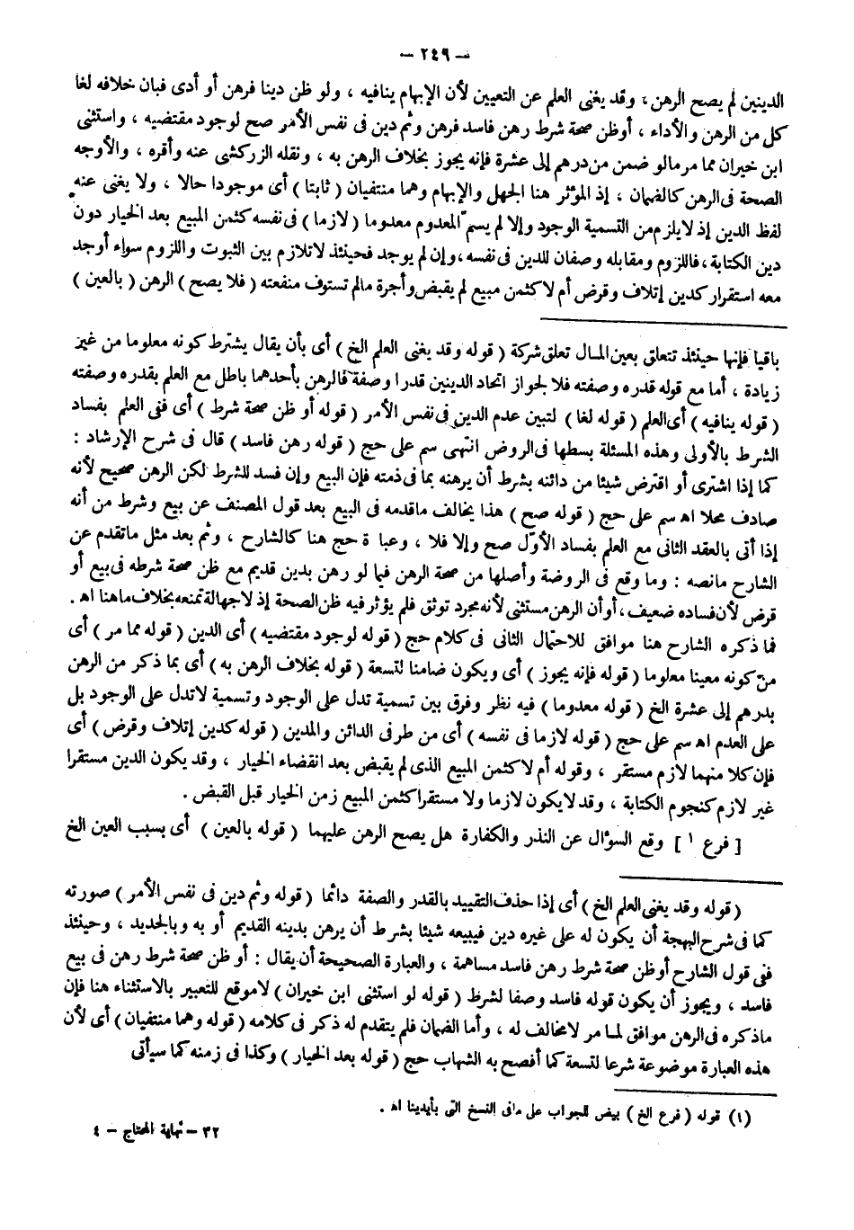ـــــــــــــــــــــــــــــQقَوْلُهُ: وَقَدْ يُغْنِي الْعِلْمُ إلَخْ) أَيْ: إذَا حَذَفَ التَّقْيِيدَ بِالْقَدْرِ وَالصِّفَةِ دَائِمًا (قَوْلُهُ: وَثَمَّ دَيْنٌ فِي نَفْسِ الْأَمْرِ) صُورَتُهُ كَمَا فِي شَرْحِ الْبَهْجَةِ أَنْ يَكُونَ لَهُ عَلَى غَيْرِهِ دَيْنٌ فَيَبِيعَهُ شَيْئًا بِشَرْطِ أَنْ يَرْهَنَ بِدَيْنِهِ الْقَدِيمِ أَوْ بِهِ وَبِالْجَدِيدِ، وَحِينَئِذٍ فَفِي قَوْلِ الشَّارِحِ أَوْ ظَنَّ صِحَّةَ شَرْطِ رَهْنٍ فَاسِدٍ مُسَاهَمَةٌ، وَالْعِبَارَةُ الصَّحِيحَةُ أَنْ يُقَالَ: أَوْ ظَنَّ صِحَّةَ شَرْطِ رَهْنٍ فِي بَيْعٍ فَاسِدٍ، وَيَجُوزُ أَنْ يَكُونَ قَوْلُهُ: فَاسِدٌ وَصْفًا لِشَرْطٍ. (قَوْلُهُ: لَوْ اسْتَثْنَى ابْنُ خَيْرَانَ) لَا مَوْقِعَ لِلتَّعْبِيرِ بِالِاسْتِثْنَاءِ هُنَا فَإِنَّ مَا ذَكَرَهُ فِي الرَّهْنِ مُوَافِقٌ لِمَا مَرَّ لَا مُخَالِفٌ لَهُ، وَأَمَّا الضَّمَانُ فَلَمْ يَتَقَدَّمْ لَهُ ذِكْرٌ فِي كَلَامِهِ. (قَوْلُهُ: وَهُمَا مُنْتَفِيَانِ) أَيْ؛ لِأَنَّ هَذِهِ الْعِبَارَةَ مَوْضُوعَةٌ شَرْعًا لِتِسْعَةٍ كَمَا أَفْصَحَ بِهِ الشِّهَابُ حَجّ (قَوْلُهُ: بَعْدَ الْخِيَارِ) وَكَذَا فِي زَمَنِهِ كَمَا سَيَأْتِي