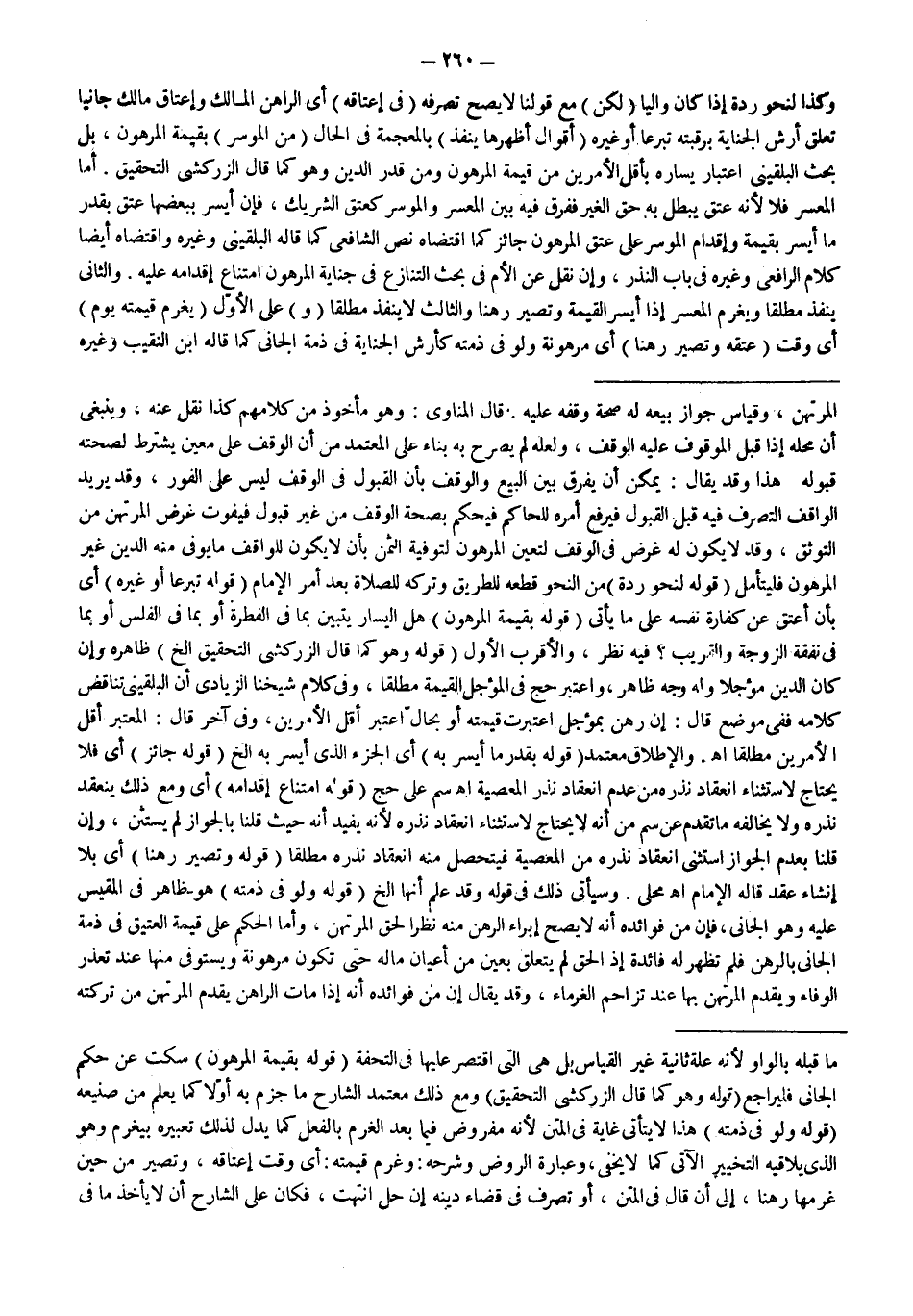 هَذَا وَقَدْ يُقَالُ: يُمْكِنُ أَنْ يُفَرَّقَ بَيْنَ الْبَيْعِ وَالْوَقْفِ بِأَنَّ الْقَبُولَ فِي الْوَقْفِ لَيْسَ عَلَى الْفَوْرِ، وَقَدْ يُرِيدُ الْوَاقِفُ التَّصَرُّفَ فِيهِ قَبْلَ الْقَبُولِ فَيَرْفَعُ أَمْرَهُ لِلْحَاكِمِ فَيَحْكُمُ بِصِحَّةِ الْوَقْفِ مِنْ غَيْرِ قَبُولٍ فَيَفُوتُ غَرَضُ الْمُرْتَهِنِ مِنْ التَّوَثُّقِ، وَقَدْ لَا يَكُونُ لَهُ غَرَضٌ فِي الْوَقْفِ لِتَعَيُّنِ الْمَرْهُونِ لِتَوْفِيَةِ الثَّمَنِ بِأَنْ لَا يَكُونَ لِلْوَاقِفِ مَا يُوَفِّي مِنْهُ الدَّيْنَ غَيْرُ الْمَرْهُونِ فَلْيُتَأَمَّلْ (قَوْلُهُ: لِنَحْوِ رِدَّةٍ) مِنْ النَّحْوِ قَطْعُهُ لِلطَّرِيقِ وَتَرْكُهُ لِلصَّلَاةِ بَعْدَ أَمْرِ الْإِمَامِ (قَوْلُهُ: تَبَرُّعًا أَوْ غَيْرَهُ) أَيْ بِأَنْ أَعْتَقَ عَنْ كَفَّارَةِ نَفْسِهِ عَلَى مَا يَأْتِي (قَوْلُهُ: بِقِيمَةِ الْمَرْهُونِ) هَلْ الْيَسَارُ يَتَبَيَّنُ بِمَا فِي الْفِطْرَةِ أَوْ بِمَا فِي الْفَلَسِ أَوْ بِمَا فِي نَفَقَةِ الزَّوْجَةِ وَالْقَرِيبِ؟ فِيهِ نَظَرٌ، وَالْأَقْرَبُ الْأَوَّلُ (قَوْلُهُ: وَهُوَ كَمَا قَالَ الزَّرْكَشِيُّ التَّحْقِيقُ إلَخْ) ظَاهِرُهُ وَإِنْ كَانَ الدَّيْنُ مُؤَجَّلًا وَلَهُ وَجْهٌ ظَاهِرٌ، وَاعْتَبَرَ حَجّ فِي الْمُؤَجَّلِ الْقِيمَةَ مُطْلَقًا، وَفِي كَلَامِ شَيْخِنَا الزِّيَادِيِّ أَنَّ الْبُلْقِينِيَّ تَنَاقَضَ كَلَامُهُ فَفِي مَوْضِعٍ قَالَ: إنَّ رَهَنَ بِمُؤَجَّلٍ اُعْتُبِرَتْ قِيمَتُهُ أَوْ بِحَالٍّ اُعْتُبِرَ أَقَلُّ الْأَمْرَيْنِ، وَفِي آخَرَ قَالَ: الْمُعْتَبَرُ أَقَلُّ الْأَمْرَيْنِ مُطْلَقًا اهـ، وَالْإِطْلَاقُ مُعْتَمَدٌ (قَوْلُهُ: بِقَدْرِ مَا أَيْسَرَ بِهِ) أَيْ الْجُزْءِ الَّذِي أَيْسَرَ بِهِ إلَخْ.