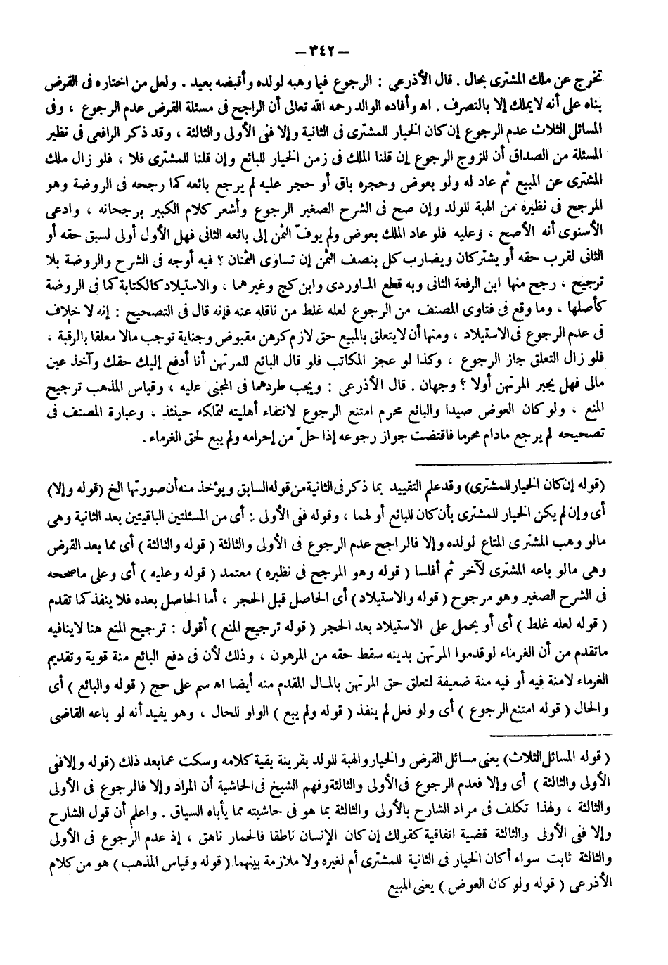 ـــــــــــــــــــــــــــــQقَوْلُهُ: الْمَسَائِلِ الثَّلَاثِ) يَعْنِي مَسَائِلَ الْقَرْضِ وَالْخِيَارِ وَالْهِبَةِ لِلْوَلَدِ بِقَرِينَةِ بَقِيَّةِ كَلَامِهِ وَسَكَتَ عَمَّا بَعْدَ ذَلِكَ. (قَوْلُهُ: وَإِلَّا فَفِي الْأُولَى وَالثَّالِثَةِ) أَيْ: وَإِلَّا فَعَدَمُ الرُّجُوعِ فِي الْأُولَى وَالثَّالِثَةِ وَفَهِمَ الشَّيْخُ فِي الْحَاشِيَةِ أَنَّ الْمُرَادَ وَإِلَّا فَالرُّجُوعُ فِي الْأُولَى، وَالثَّالِثَةِ؛ وَلِهَذَا تَكَلَّفَ فِي مُرَادِ الشَّارِحِ بِالْأُولَى وَالثَّالِثَةِ بِمَا هُوَ فِي حَاشِيَتِهِ مِمَّا يَأْبَاهُ السِّيَاقُ.