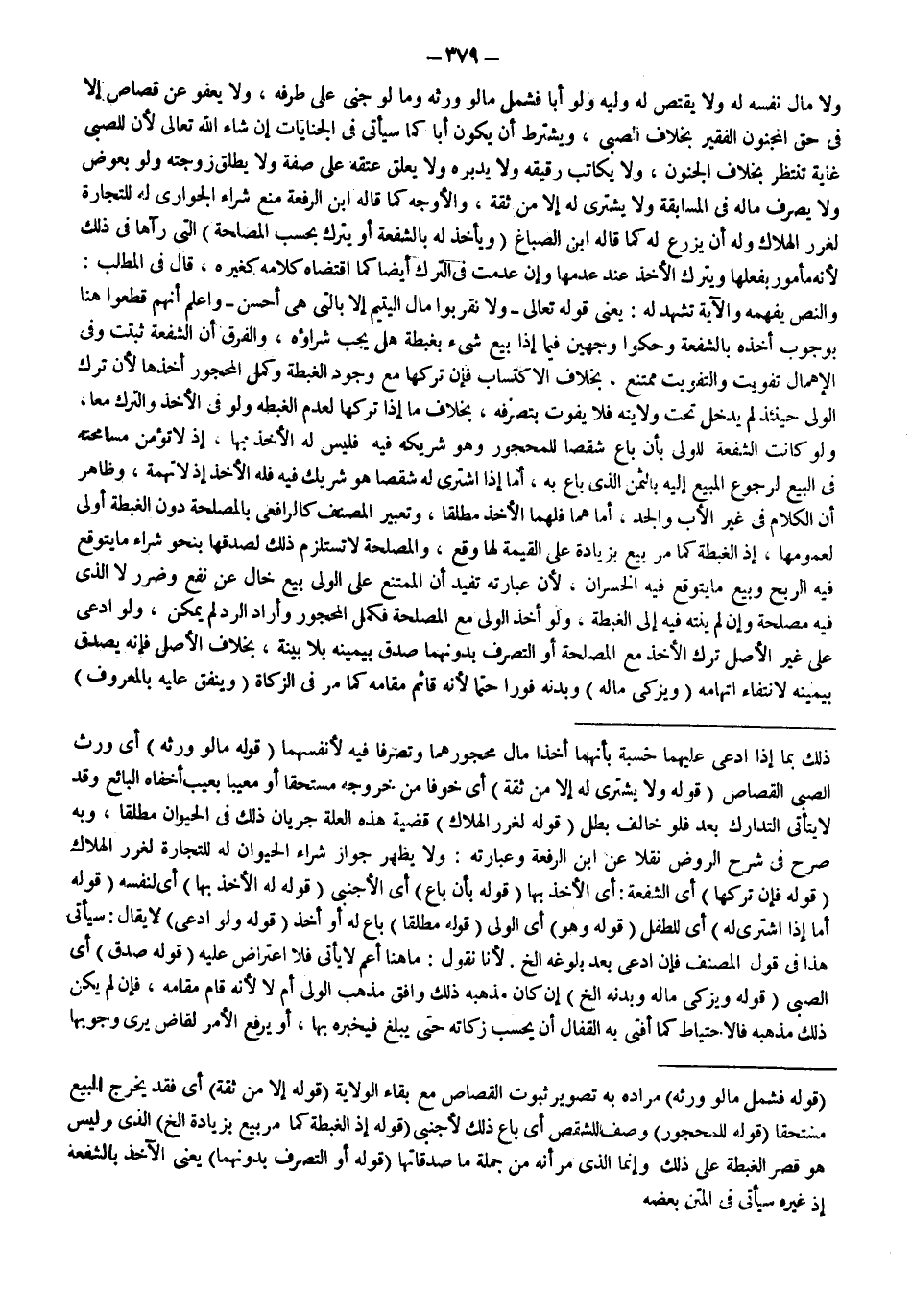 ـــــــــــــــــــــــــــــQ (قَوْلُهُ: فَشَمِلَ مَا لَوْ وَرِثَهُ) مُرَادُهُ بِهِ تَصْوِيرُ ثُبُوتِ الْقِصَاصِ مَعَ بَقَاءِ الْوِلَايَةِ (قَوْلُهُ: إلَّا مِنْ ثِقَةٍ) أَيْ فَقَدْ يَخْرُجُ الْبَيْعُ مُسْتَحَقًّا. (قَوْلُهُ: لِلْمَحْجُورِ) وَصْفٌ لِلشِّقْصِ أَيْ بَاعَ ذَلِكَ لِأَجْنَبِيٍّ (قَوْلُهُ: إذْ الْغِبْطَةُ كَمَا مَرَّ بَيْعٌ بِزِيَادَةٍ إلَخْ) الَّذِي مَرَّ لَيْسَ هُوَ قَصْرَ الْغِبْطَةِ عَلَى ذَلِكَ وَإِنَّمَا الَّذِي مَرَّ أَنَّهُ مِنْ جُمْلَةِ مَاصَدَقَاتِهَا (قَوْلُهُ: أَوْ التَّصَرُّفَ بِدُونِهِمَا) يَعْنِي الْآخِذَ بِالشُّفْعَةِ إذْ غَيْرُهُ سَيَأْتِي فِي الْمَتْنِ بَعْضُهُ