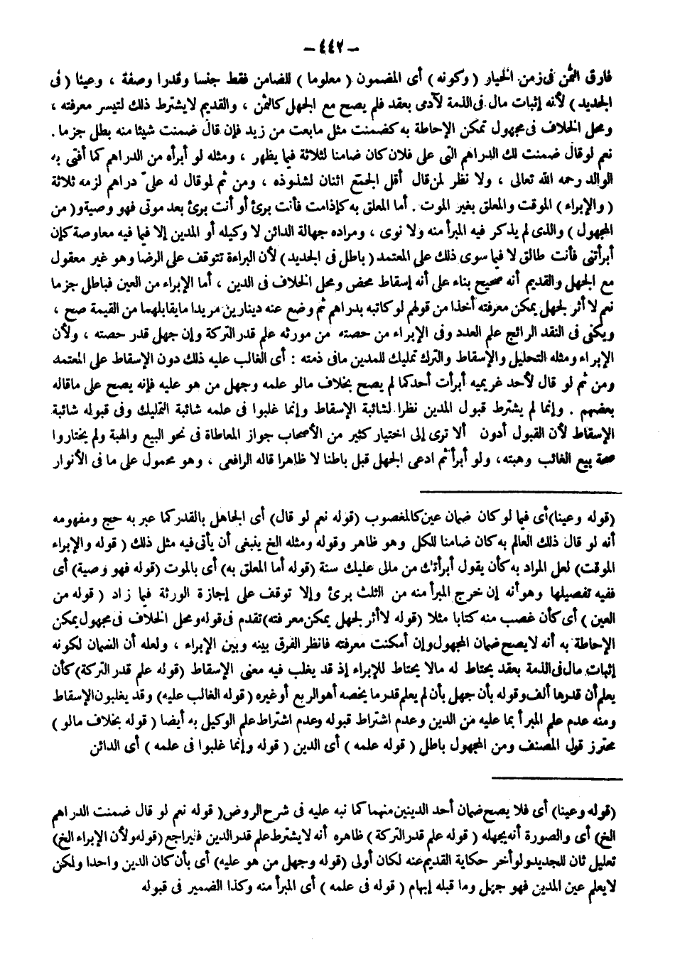 نَعَمْ لَوْ قَالَ: ضَمِنْت لَك الدَّرَاهِمَ الَّتِي عَلَى فُلَانٍ كَانَ ضَامِنًا لِثَلَاثَةٍ فِيمَا يَظْهَرُ، وَمِثْلُهُ لَوْ أَبْرَأَهُ مِنْ الدَّرَاهِمِ كَمَا أَفْتَى بِهِ الْوَالِدُ - رَحِمَهُ اللَّهُ تَعَالَى -، وَلَا نَظَرَ لِمَنْ قَالَ أَقَلُّ الْجَمْعِ اثْنَانِ لِشُذُوذِهِ، وَمِنْ ثَمَّ لَوْ قَالَ لَهُ عَلَيَّ دَرَاهِمُ لَزِمَهُ ثَلَاثَةٌ