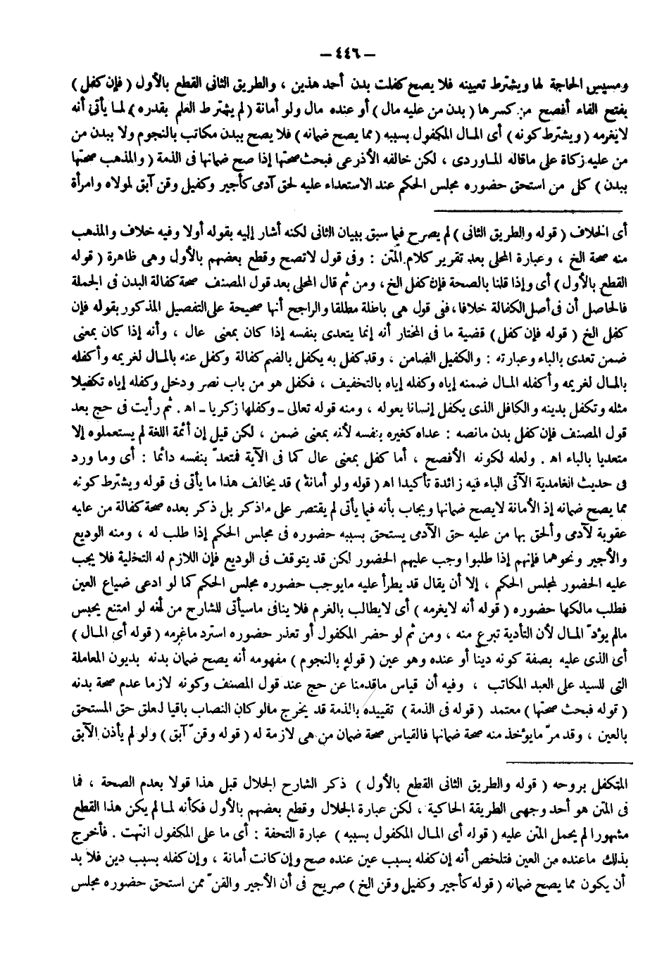 ـــــــــــــــــــــــــــــSأَيْ الْخِلَافُ (قَوْلُهُ: وَالطَّرِيقُ الثَّانِي) لَمْ يُصَرِّحْ فِيمَا سَبَقَ بِبَيَانِ الثَّانِي لَكِنَّهُ أَشَارَ إلَيْهِ بِقَوْلِهِ أَوَّلًا وَفِيهِ خِلَافٌ وَالْمَذْهَبُ مِنْهُ صِحَّةُ إلَخْ، وَعِبَارَةُ الْمَحَلِّيِّ بَعْدَ تَقْرِيرِ كَلَامِ الْمَتْنِ: وَفِي قَوْلٍ لَا تَصِحُّ وَقَطَعَ بَعْضُهُمْ بِالْأَوَّلِ وَهِيَ ظَاهِرَةٌ (قَوْلُهُ: الْقَطْعُ بِالْأَوَّلِ) أَيْ وَإِذَا قُلْنَا بِالصِّحَّةِ فَإِنْ كَفَلَ إلَخْ، وَمِنْ ثَمَّ قَالَ الْمَحَلِّيُّ بَعْدَ قَوْلِ الْمُصَنِّفِ: صِحَّةُ كَفَالَةِ الْبَدَنِ فِي الْجُمْلَةِ فَالْحَاصِلُ أَنَّ فِي أَصْلِ الْكَفَالَةِ خِلَافًا، فَفِي قَوْلٍ: هِيَ بَاطِلَةٌ مُطْلَقًا وَالرَّاجِحُ أَنَّهَا صَحِيحَةٌ عَلَى التَّفْصِيلِ الْمَذْكُورِ بِقَوْلِهِ: فَإِنْ كَفَلَ إلَخْ
