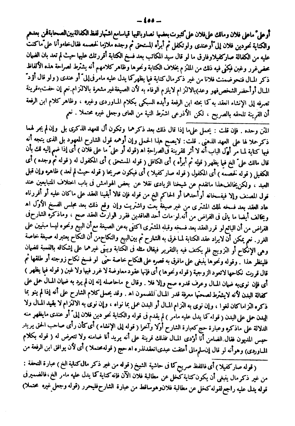 نَعَمْ يُمْكِنُ أَنْ لَا يُرَادَ عَقْدُ الْكِتَابَةِ لِمَا فَرَّقَ بِهِ الشَّارِحُ ثُمَّ بَيَّنَ الْبَيْعَ وَالنِّكَاحَ مِنْ أَنَّ النِّكَاحَ يُعْتَبَرُ لَهُ صِيغَةٌ خَاصَّةٌ وَهِيَ الْإِنْكَاحُ أَوْ التَّزْوِيجُ فَلَمْ يَكْتَفِ فِيهِ بِالتَّقْرِيرِ فَيُقَالُ مِثْلُهُ فِي الْكِتَابَةِ وَيَبْقَى غَيْرُهُمَا عَلَى إشْكَالِهِ بِالنِّسْبَةِ لِلضَّمَانِ فَلْيُنْظَرْ هَذَا.
