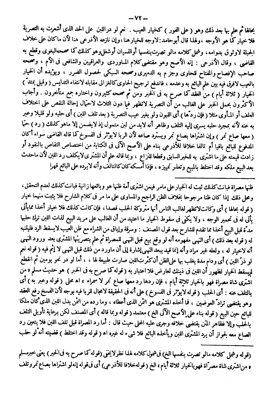 وَأَجَابَ الْأَكْثَرُونَ بِحَمْلِ الْخَبَرِ عَلَى الْغَالِبِ مِنْ أَنَّ التَّصْرِيَةَ لَا تَظْهَرُ فِيمَا دُونَ الثَّلَاثِ لِاحْتِمَالِ إحَالَةِ النَّقْصِ عَلَى اخْتِلَافِ الْعَلَفِ أَوْ الْمَأْوَى مَثَلًا