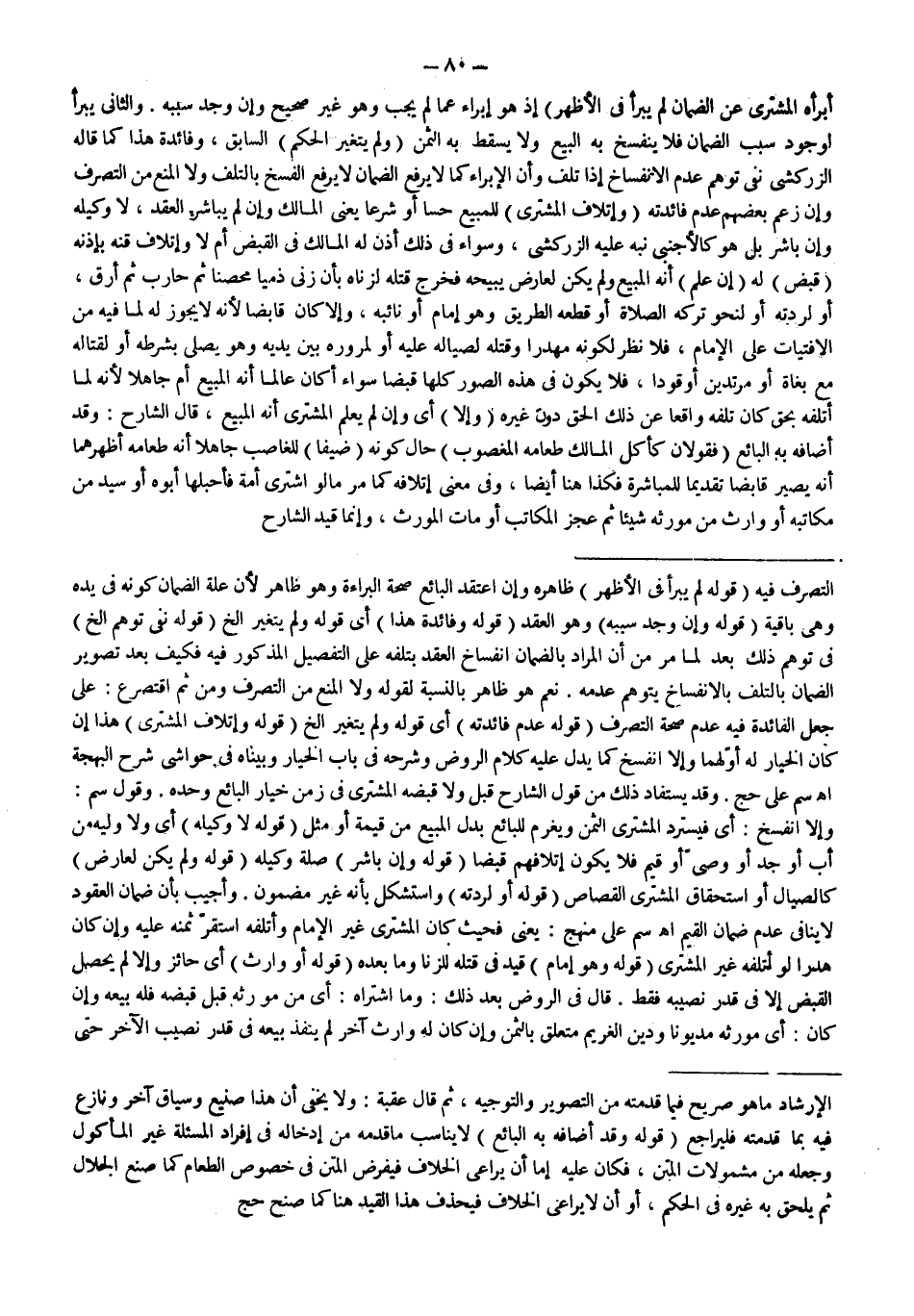 ـــــــــــــــــــــــــــــSالتَّصَرُّفِ فِيهِ (قَوْلُهُ: لَمْ يَبْرَأْ فِي الْأَظْهَرِ) ظَاهِرُهُ وَإِنْ اعْتَقَدَ الْبَائِعُ صِحَّةَ الْبَرَاءَةِ وَهُوَ ظَاهِرٌ لِأَنَّ عِلَّةَ الضَّمَانِ كَوْنُهُ فِي يَدِهِ وَهِيَ بَاقِيَةٌ (قَوْلُهُ: وَإِنْ وُجِدَ سَبَبُهُ) وَهُوَ الْعَقْدُ (قَوْلُهُ: وَفَائِدَةُ هَذَا) أَيْ قَوْلُهُ وَلَمْ يَتَغَيَّرْ إلَخْ (قَوْلُهُ: نَفْيُ تَوَهُّمٍ إلَخْ) فِي تَوَهُّمِ ذَلِكَ بُعْدٌ لِمَا مَرَّ مِنْ أَنَّ الْمُرَادَ بِالضَّمَانِ انْفِسَاخُ الْعَقْدِ بِتَلَفِهِ عَلَى التَّفْصِيلِ الْمَذْكُورِ فِيهِ فَكَيْفَ بَعْدَ تَصْوِيرِ الضَّمَانِ بِالتَّلَفِ بِالِانْفِسَاخِ يُتَوَهَّمُ عَدَمُهُ.