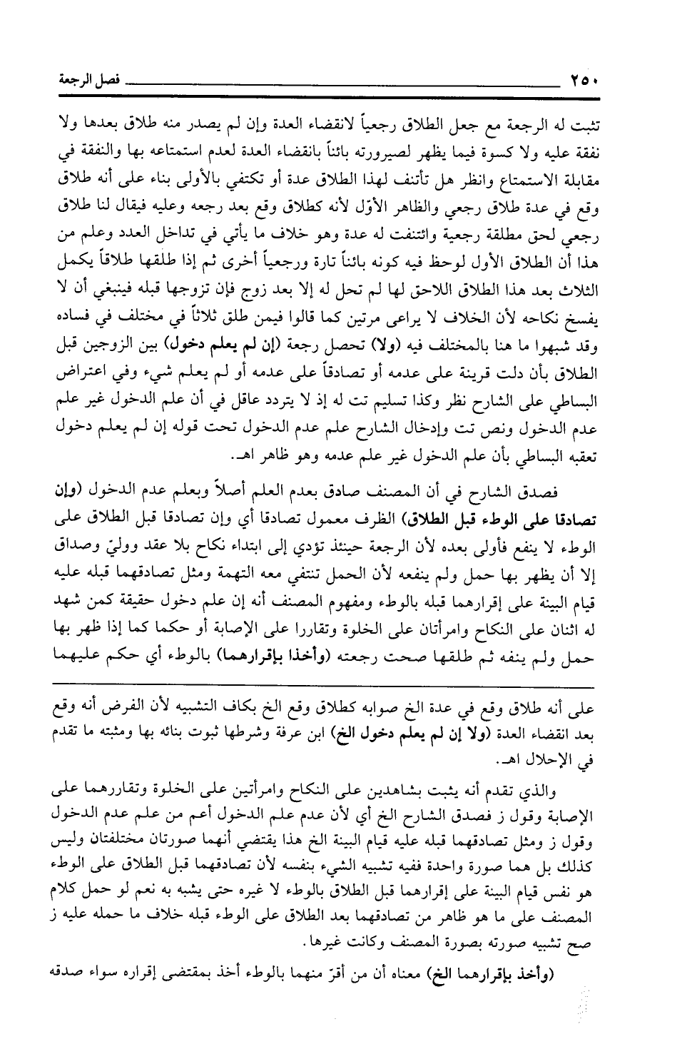 فصدق الشارح في أن المصنف صادق بعدم العلم أصلًا وبعلم عدم الدخول (وإن تصادقا على الوطء قبل الطلاق) الظرف معمول تصادقا أي وإن تصادقا قبل الطلاق على الوطء لا ينفع فأولى بعده لأن الرجعة حينئذ تؤدي إلى ابتداء نكاح بلا عقد وولي وصداق إلا أن يظهر بها حمل ولم ينفعه لأن الحمل تنتفي معه التهمة ومثل تصادقهما قبله عليه قيام البينة على إقرارهما قبله بالوطء ومفهوم المصنف أنه إن علم دخول حقيقة كمن شهد له اثنان على النكاح وامرأتان على الخلوة وتقاررا على الإصابة أو حكما كما إذا ظهر بها حمل ولم ينفه ثم طلقها صحت رجعته (وأخذا بإقرارهما) بالوطء أي حكم عليهما