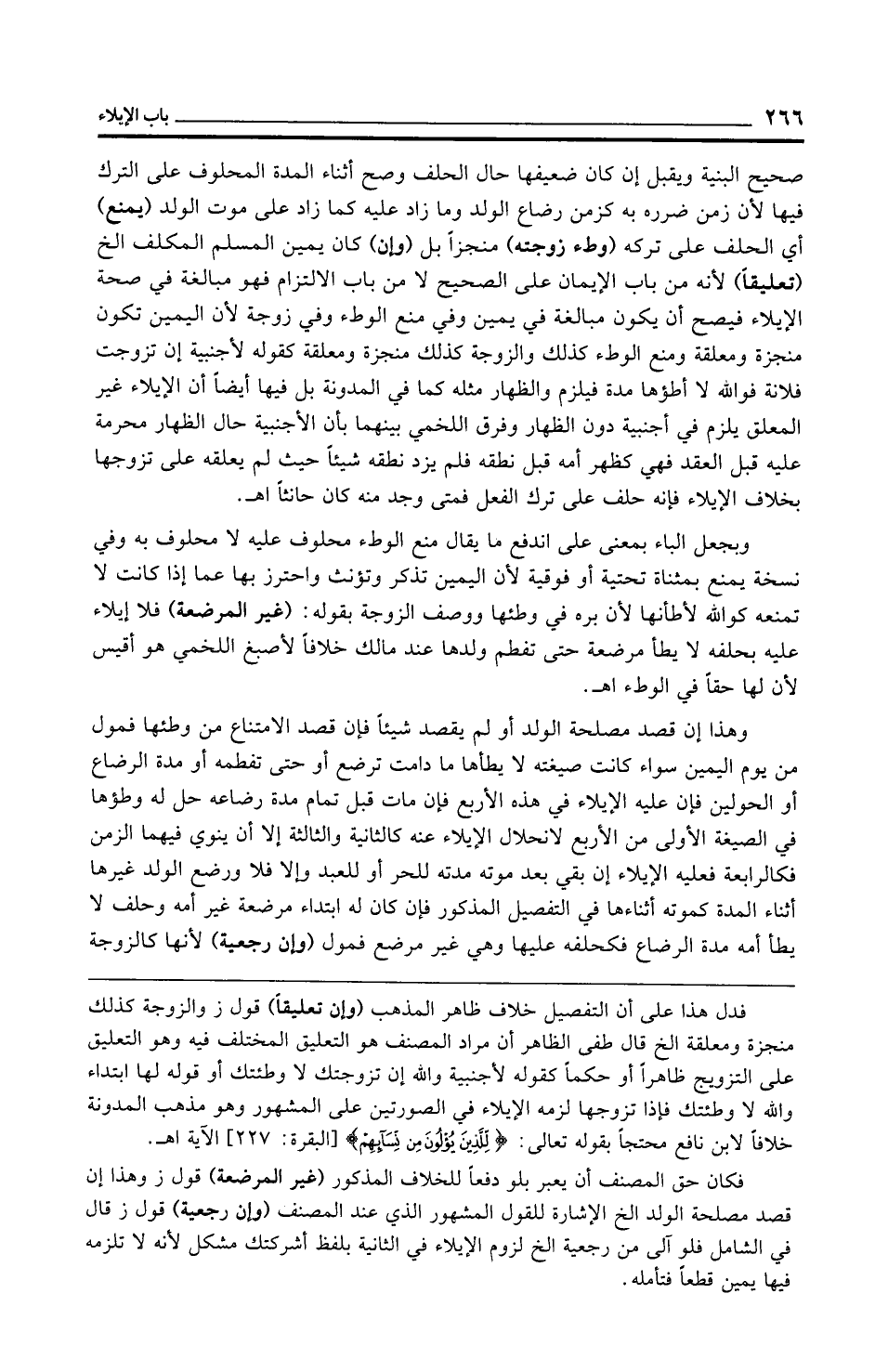 فكان حق المصنف أن يعبر بلو دفعًا للخلاف المذكور (غير المرضعة) قول ز وهذا إن قصد مصلحة الولد الخ الإشارة للقول المشهور الذي عند المصنف (وإن رجعية) قول ز قال في الشامل فلو آلى من رجعية الخ لزوم الإيلاء في الثانية بلفظ أشركتك مشكل لأنه لا تلزمه فيها يمين قطعًا فتأمله.