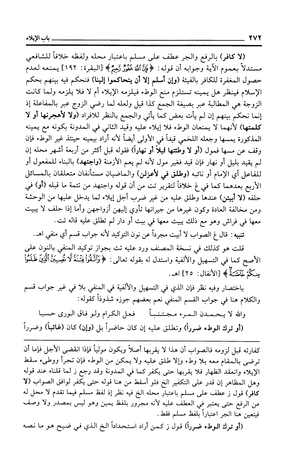تنبيه: قال غ الصواب لا أبيت مجردًا عن نون التوكيد لأنه جواب قسم أي منفي اهـ.