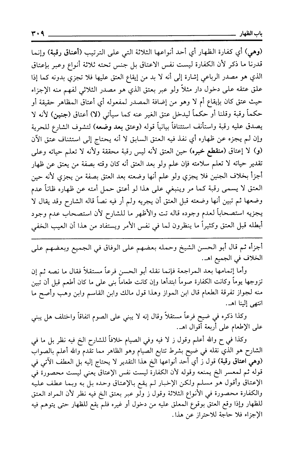 وأما إتمامها بعد المراجعة فإنما نقله أبو الحسن فرعًا مستقلًا فقال ما نصه ثم إن تزوجها يومًا وكانت الكفارة صومًا ابتدأها وإن كانت طعامًا بنى على ما كان أطعم قبل أن تبين منه لجواز تفرقة الطعام قال ابن المواز وهذا قول مالك وابن القاسم وابن وهب وأصح ما انتهى إلينا اهـ.