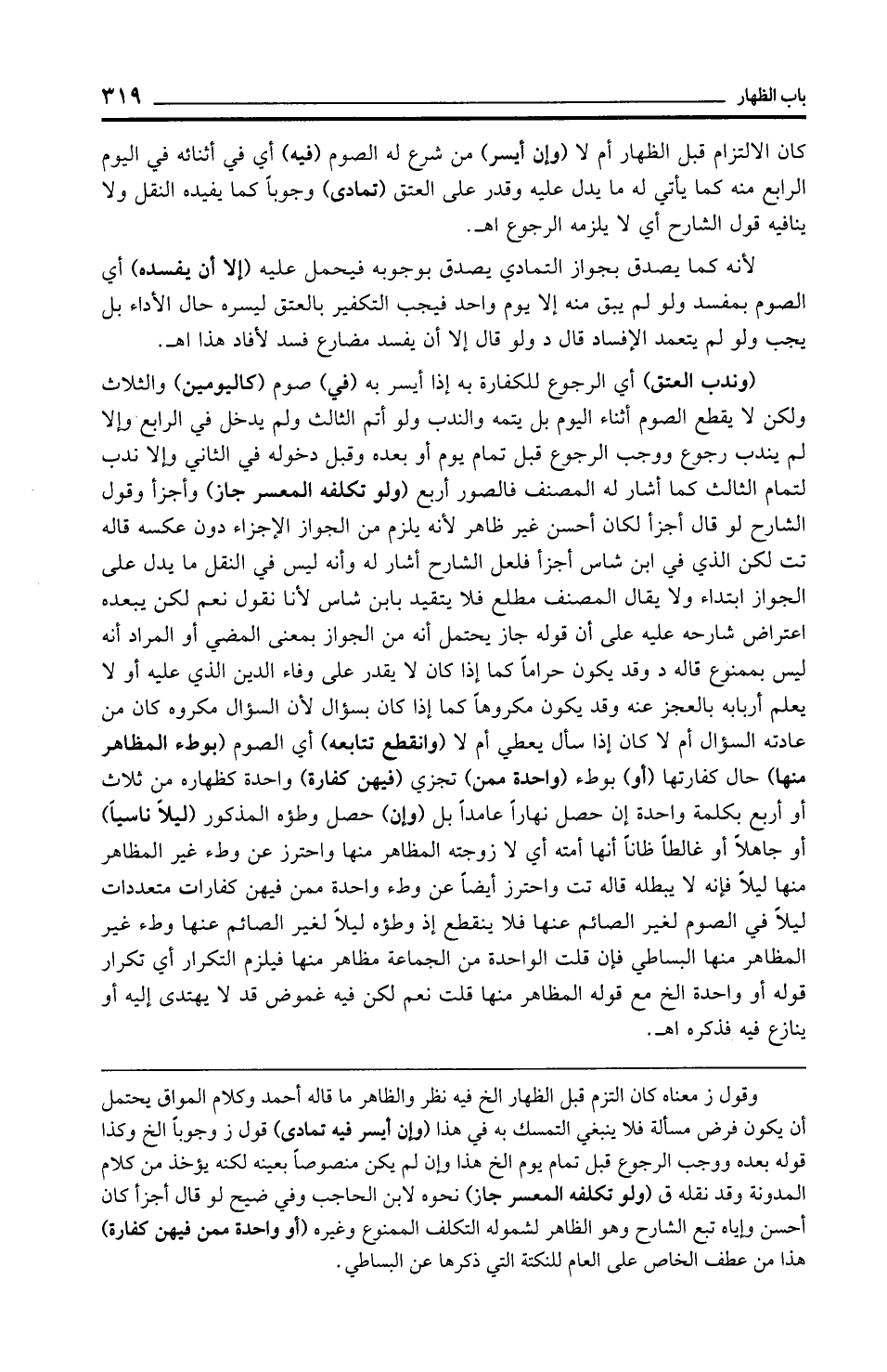 وقول ز معناه كان التزم قبل الظهار الخ فيه نظر والظاهر ما قاله أحمد وكلام المواق يحتمل أن يكون فرض مسألة فلا ينبغي التمسك به في هذا (وإن أيسر فيه تمادى) قول ز وجوبًا الخ وكذا قوله بعده ووجب الرجوع قبل تمام يوم الخ هذا وإن لم يكن منصوصًا بعينه لكنه يؤخذ من كلام المدونة وقد نقله ق (ولو تكلفه المعسر جاز) نحوه لابن الحاجب وفي ضيح لو قال أجزأ كان أحسن وإياه تبع الشارح وهو الظاهر لشموله التكلف الممنوع وغيره (أو واحدة ممن فيهن كفارة) هذا من عطف الخاص على العام للنكتة التي ذكرها عن البساطي.