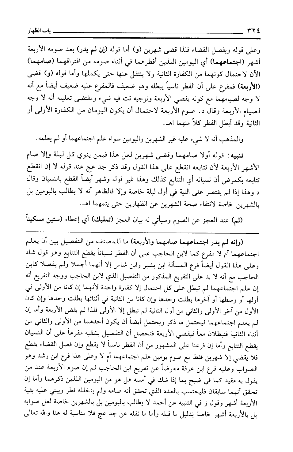 تنبيه: قوله أولا صامهما وقضى شهرين لعل هذا فيمن ينوي كل ليلة وإلا صام الأشهر الأربعة لأن تتابعه انقطع على هذا القول وقد ذكر جد عج عند قوله لا إن انقطع تتابعه بكمرض أن نسيانه أي التتابع كذلك وهذا غير قوله وشهر أيضًا القطع بالنسيان وقال د وهذا إذا لم يقتصر على النية في أول ليلة خاصة وإلا فالظاهر أنه لا يطالب باليومين بل بالشهرين خاصة لانتفاء صحة الشهرين عن الظهارين حتى يتمهما اهـ.