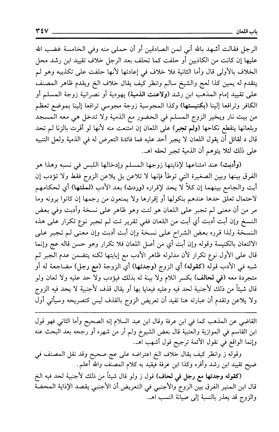 الرجل فقالت أشهد بالله أني لمن الصادقين أو أن حملي منه وفي الخامسة غضب الله عليها إن كانت من الكاذبين أو حلفت كما تحلف بعد الرجل خلاف تقييد ابن رشد محل الخلاف بالأولى قال وأما الثانية فلا خلاف في إعادتها لأنها حلفت على تكذيبه وهو لم يتقدم له يمين كذا لعج والشيخ سالم وانظر كيف يقال خلاف الخ ويقدم ظاهر المصنف على تقييد إمام المذهب ابن رشد (ولاعنت الذمية) يهودية أو نصرانية زوجة المسلم أو الكافر وترافعا إلينا (بكنيستها) وكذا المجوسية زوجة مجوسي ترافعا إلينا بموضع تعظم من بيت نار ويخير الزوج المسلم في الحضور مع الذمية ولا تدخل هي معه المسجد وبلعانها ينقطع نكاحها (ولم تجبر) على اللعان إن امتنعت منه لأنها لو أقرت بالزنا لم تحد قال د لقائل أن يقول اللعان لا يجبر أحد عليه فما فائدة التعرض له في الذمية ولعل التنبيه على ذلك لئلا يتوهم أن الذمية تجبر لحقه اهـ.