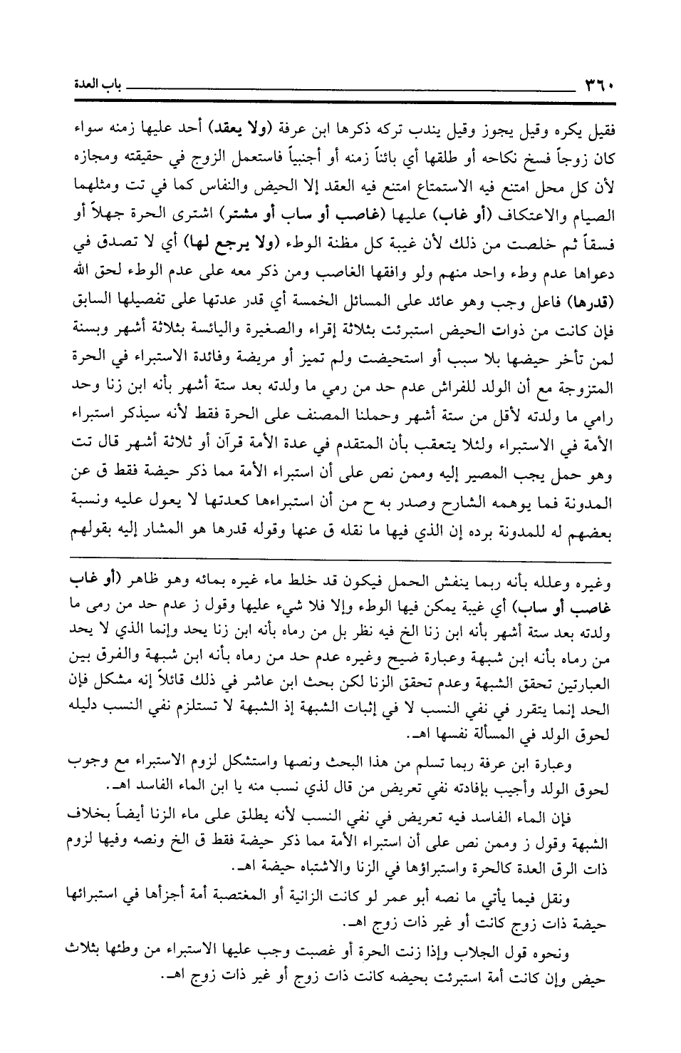 وعبارة ابن عرفة ربما تسلم من هذا البحث ونصها واستشكل لزوم الاستبراء مع وجوب لحوق الولد وأجيب بإفادته نفي تعريض من قال لذي نسب منه يا ابن الماء الفاسد اهـ.