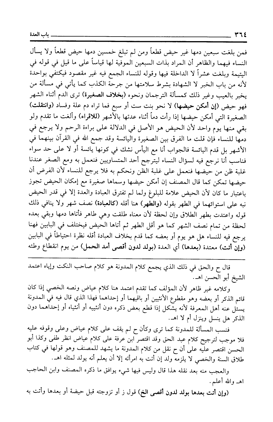 قال ح والحق في ذلك الذي يجمع كلام المدونة هو كلام صاحب النكت وإياه اعتمد الشيخ أبو الحسن اهـ.