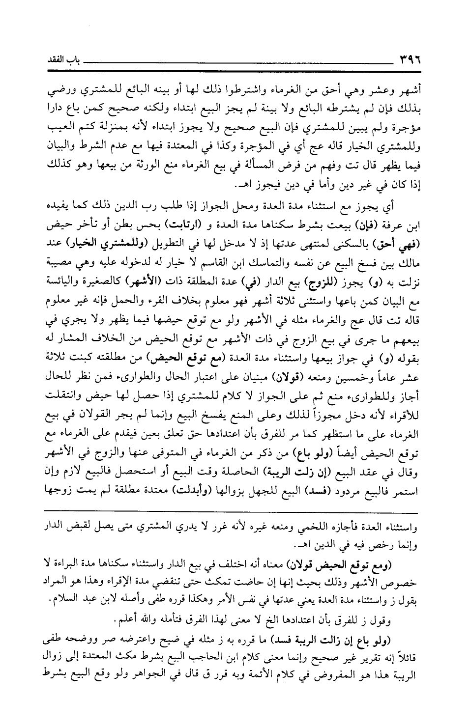 (ولو باع إن زالت الريبة فسد) ما قرره به ز مثله في ضيح واعترضه صر ووضحه طفى قائلًا إنه تقرير غير صحيح وإنما معنى كلام ابن الحاجب البيع بشرط مكث المعتدة إلى زوال الريبة هذا هو المفروض في كلام الأئمة وبه قرر ق قال في الجواهر ولو وقع البيع بشرط